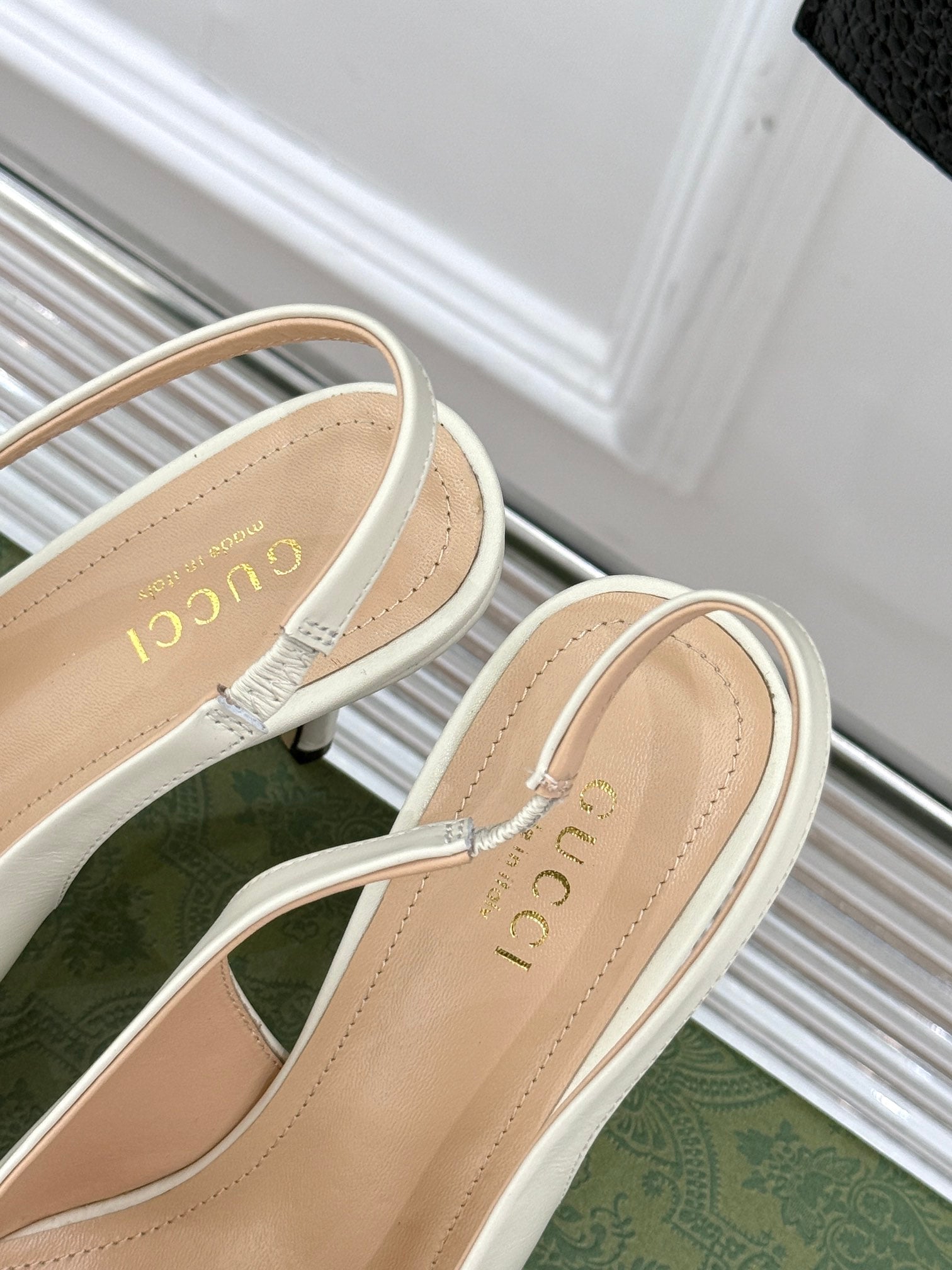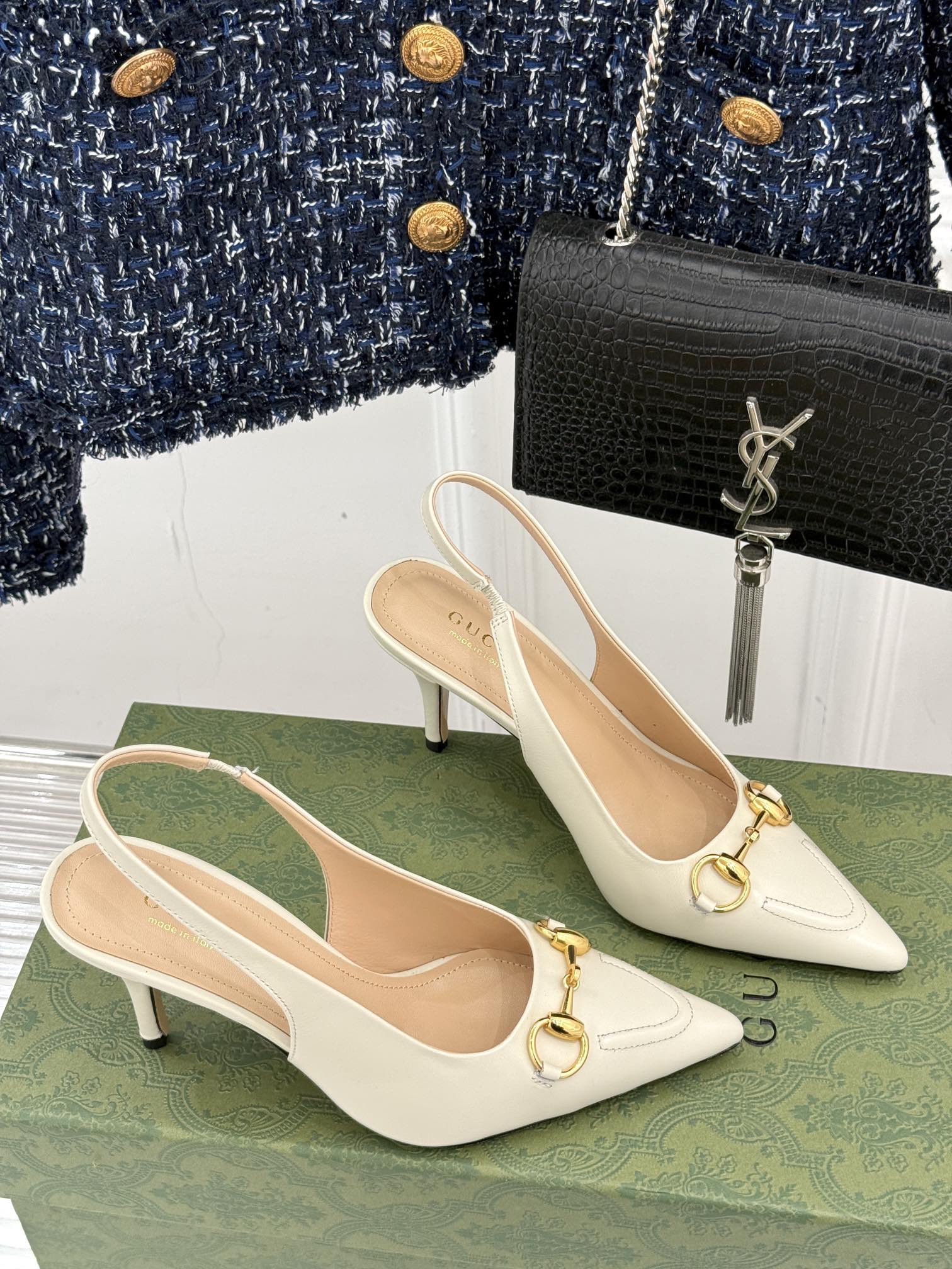 GG Horsebit Slingback 85MM Cream Leather Point Toe
