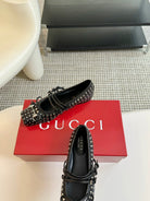 GG RIVETS BALLET FLAT BLACK HORIZONTAL STRAPS LAMBSKIN
