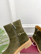 Gucci 25 horsebit ankle boots olive green suede 435378