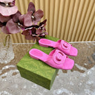 WOMEN'S INTERLOCKING G SLIDE SANDAL BRIGHT PINK CANVAS