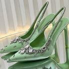 GC 2025 Crystal Embellished High Heels Slingbacks Green Silk Sheepskin 294525