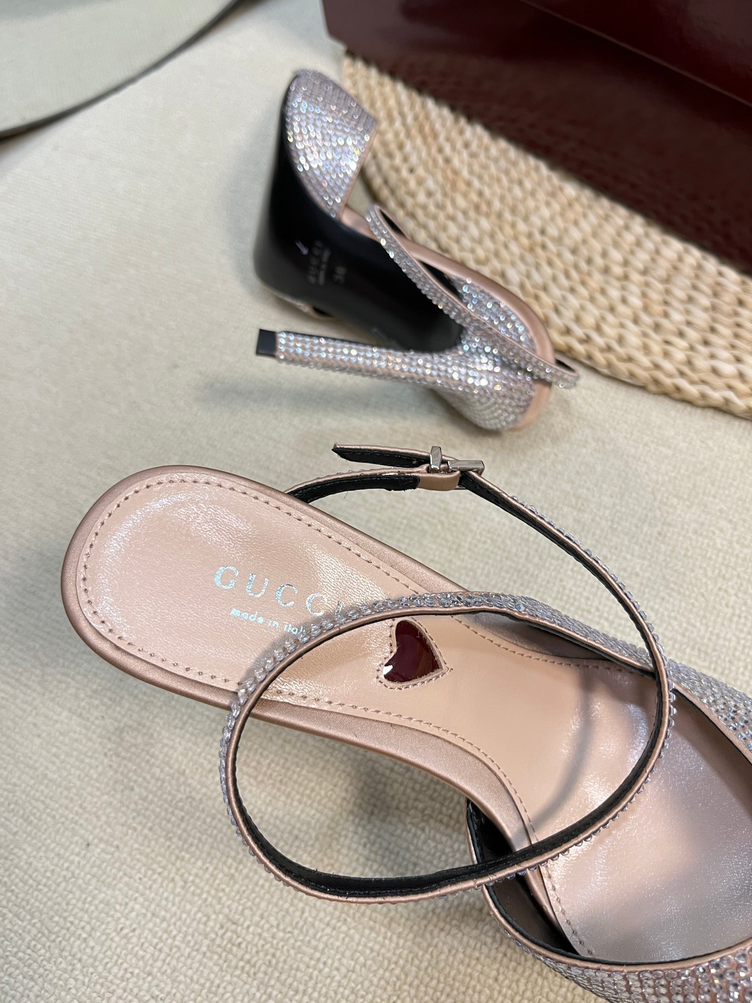 GC Crystal-Embellished Slingbacks Silver Silk Sheepskin 294610