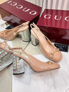 GC Horsebit Slingback with Crystal 95mm Rose Beige Patent Leather 294597