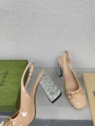 GG WOMEN'S HORSEBIT SLINGBACK 95MM IN TAN BEIGE CALFSKIN WITH RHINSTONES