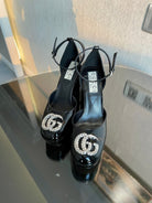 platform pump 12cm with double g black patent leather