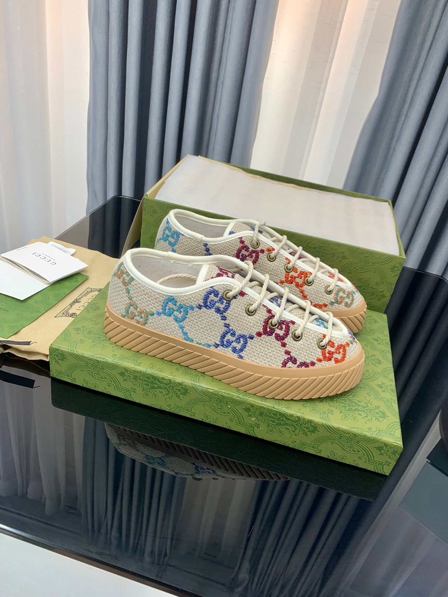 GG UNIQUE SNEAKER THICK-SOLE BEIGE CANVAS WITH PATTERN