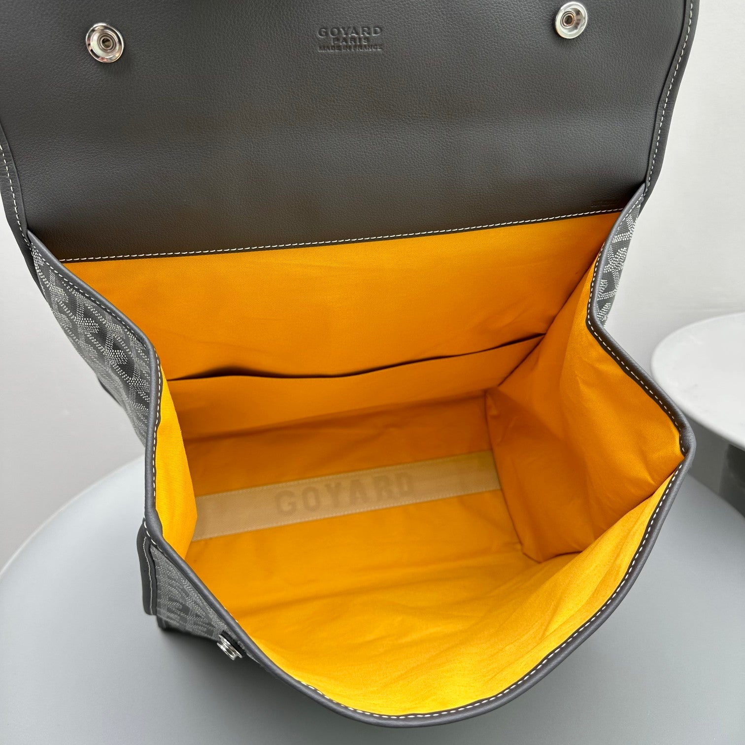 LEGER BACKPACK 37 IN GRAY GOYARDINE CANVAS WITH CALFSKIN TRIM