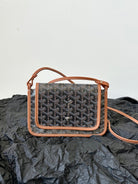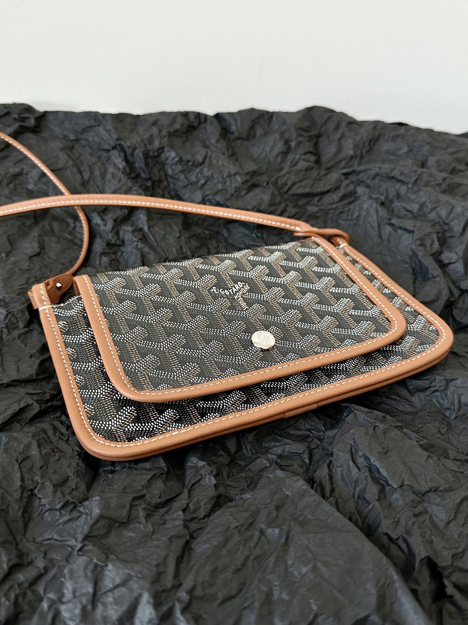 PLUMET POCKET WALLET 20 IN BLACK GOYARDINE CANVAS AND TAN LAMBSKIN TRIM