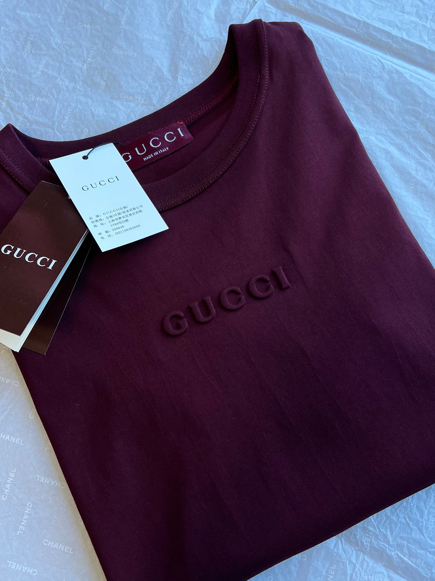 Gucci 25 Three-dimensional Embossed Letter Short-sleeved Top Red Cotton
