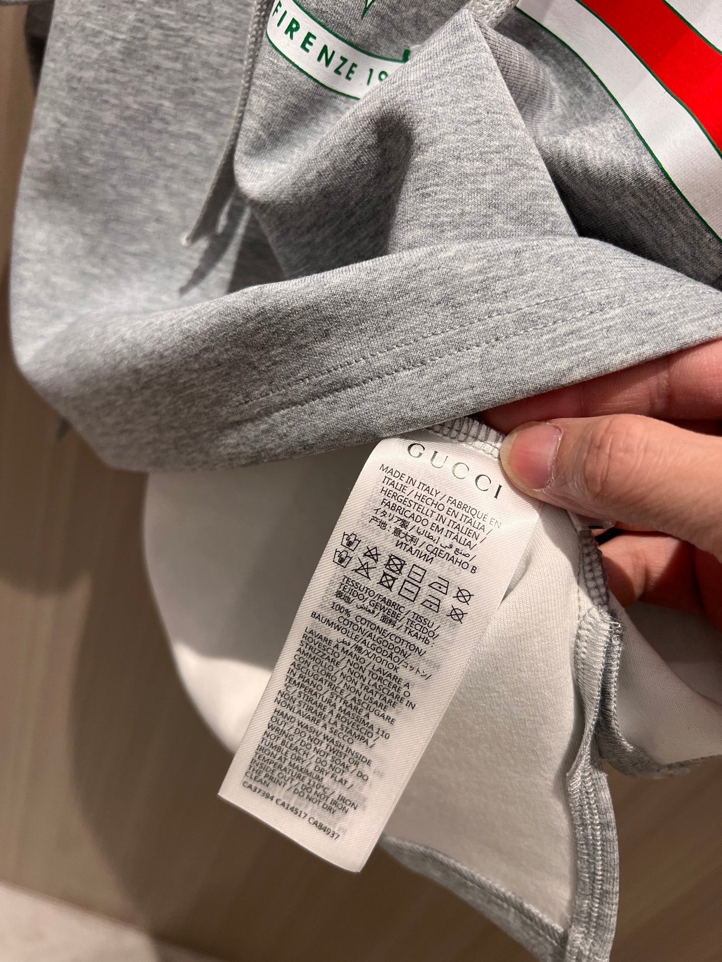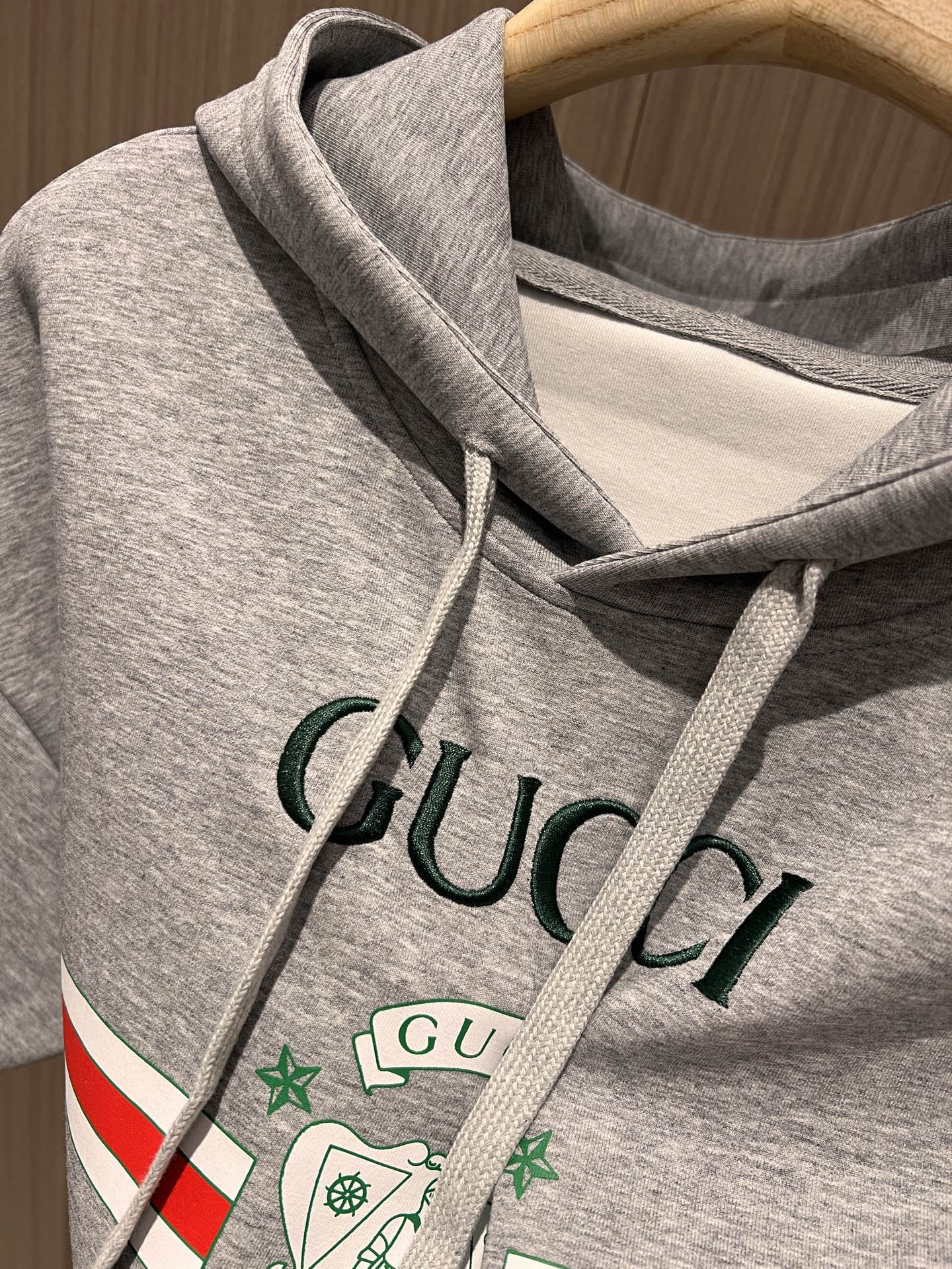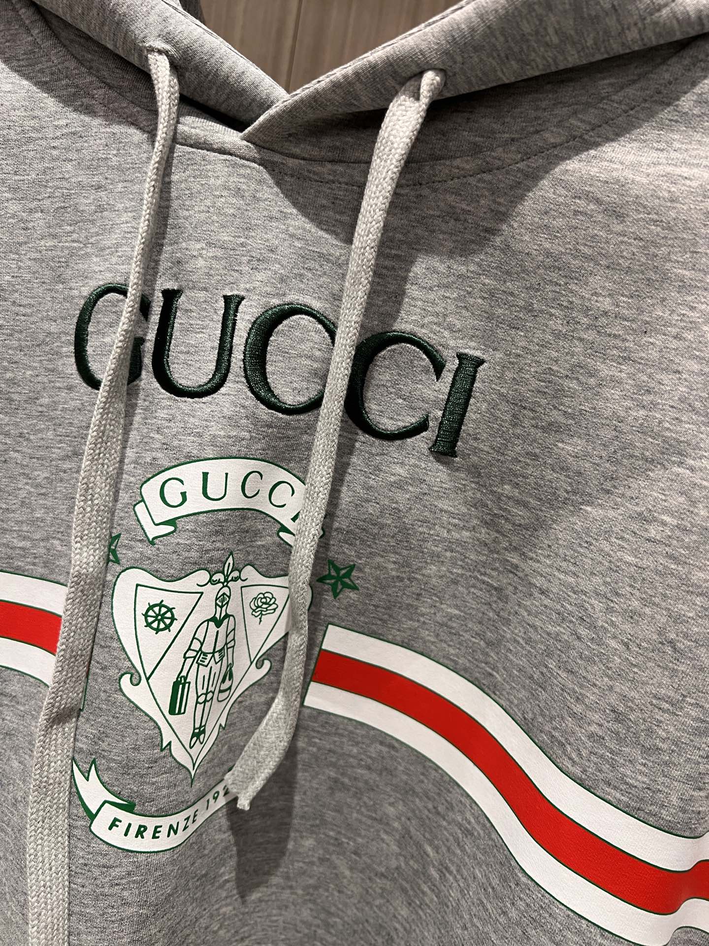 Gucci Embroidered Logo Badge Striped Print Hooded Gray Cotton