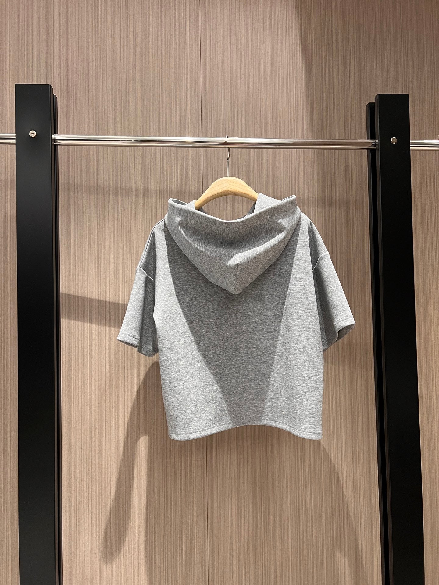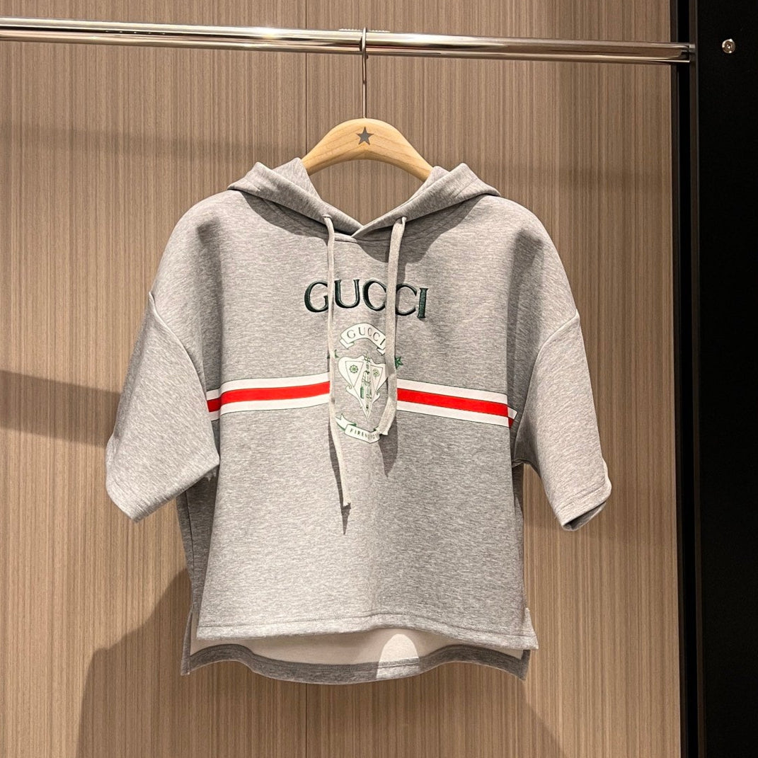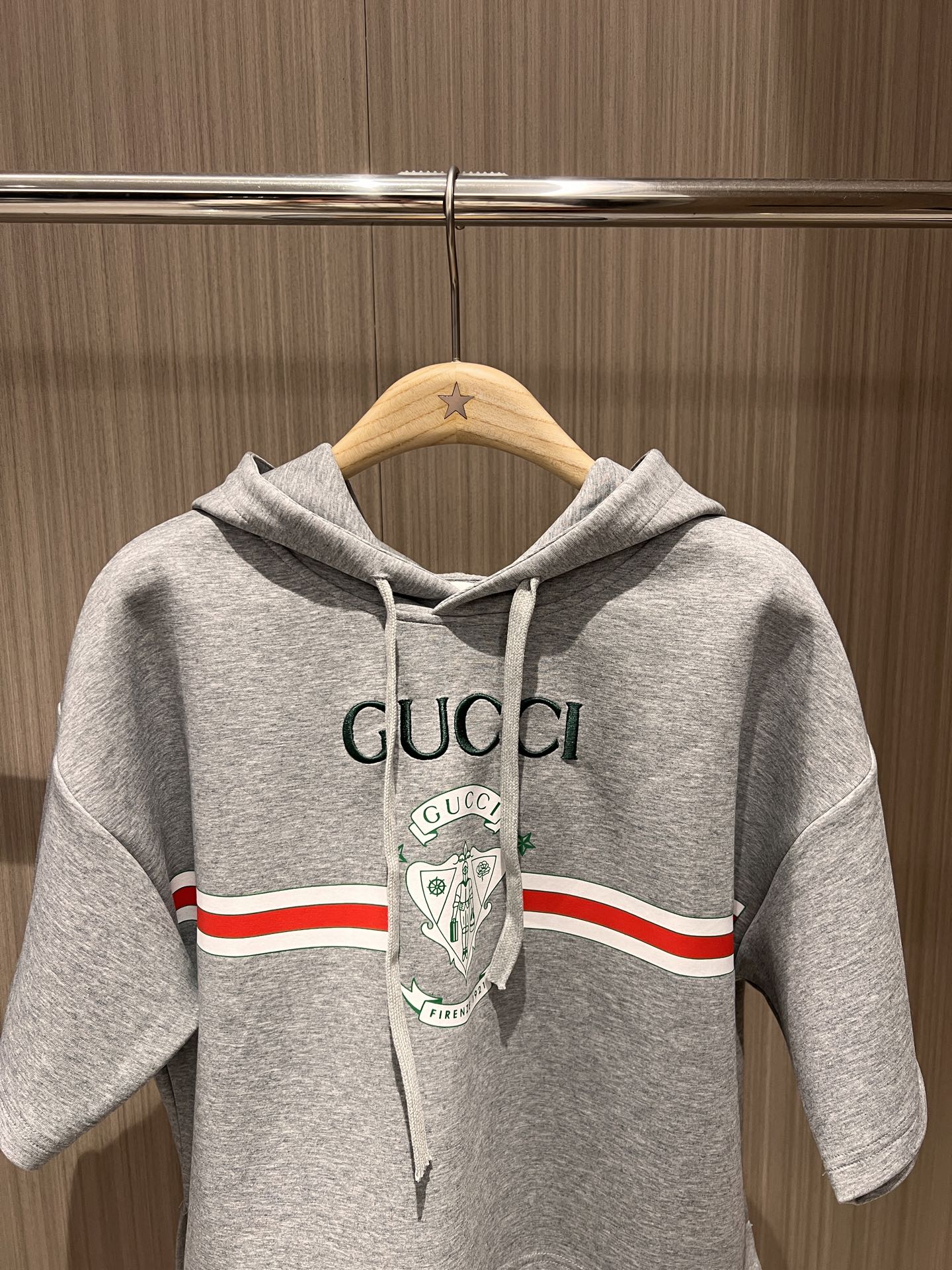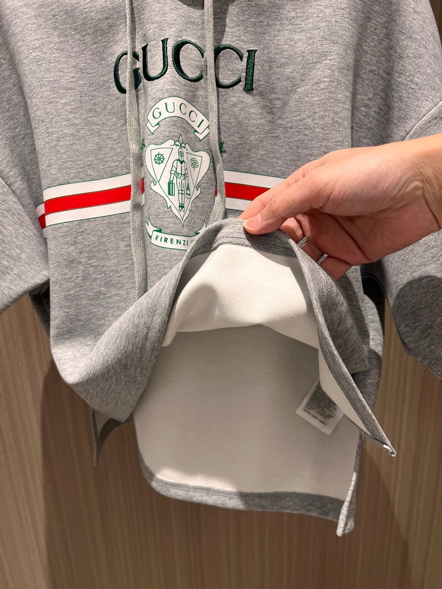 Gucci Embroidered Logo Badge Striped Print Hooded Gray Cotton