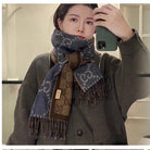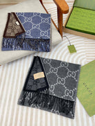 GG JACQUARD WOOL SCARF DENIM BLUE MIX COFFEE BROWN 398286
