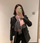 SCARF 195 CM IN SHARK GRAY AND LIGHT PINK CASHMERE 401404
