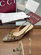 GG Horsebit Slingback 45MM Beige Ebony Monogram Canvas Point Toe Crystal-Embellished