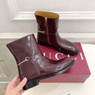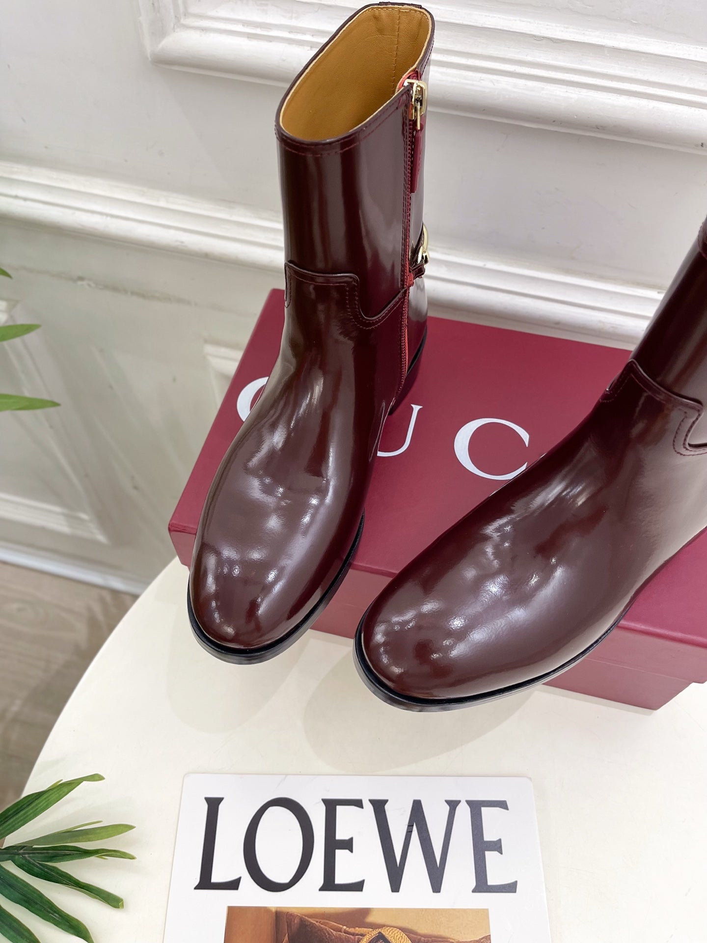 Gucci 25π¬π¬ horsebit ankle boots burgundy patent calfskin 435385