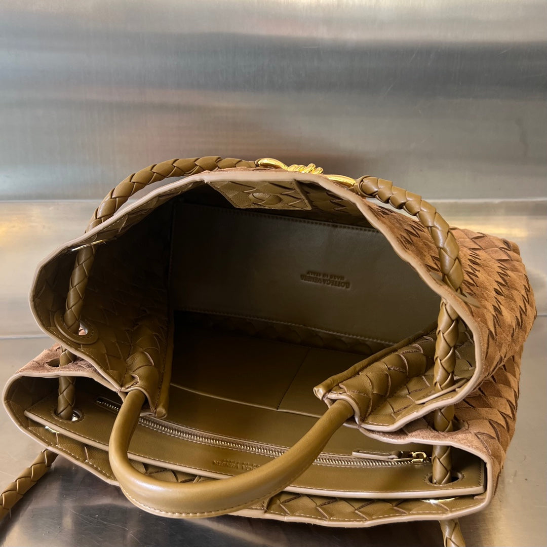 • Small Intrecciato leather top handle bag with sliding cross-body strap