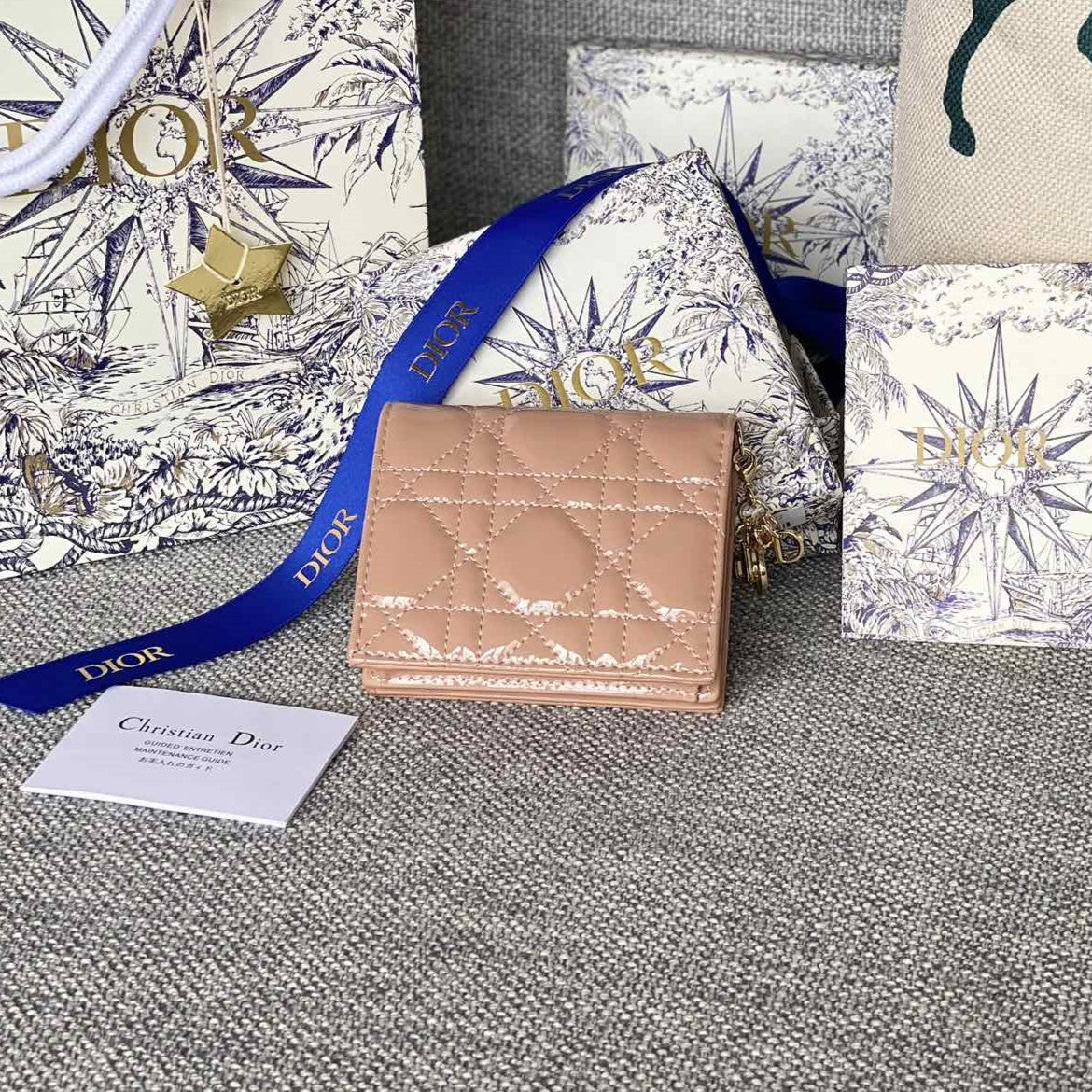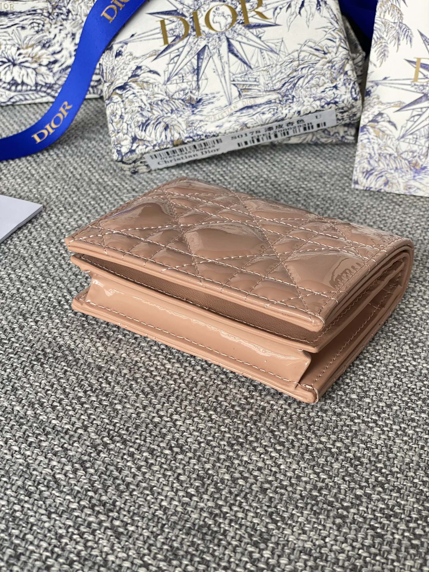 CD Caro 11cm Compact Wallet Shiny Dark Beige Calfskin