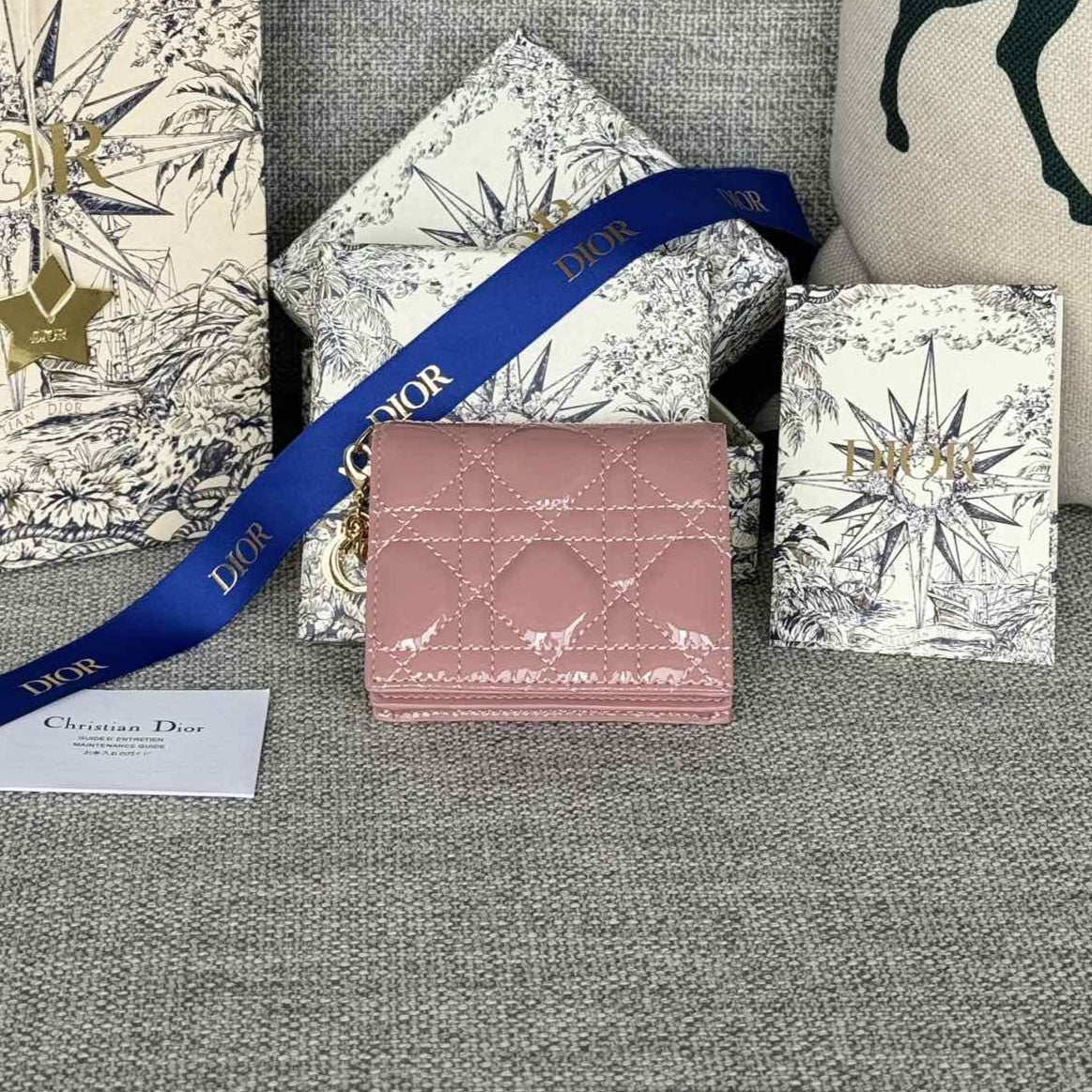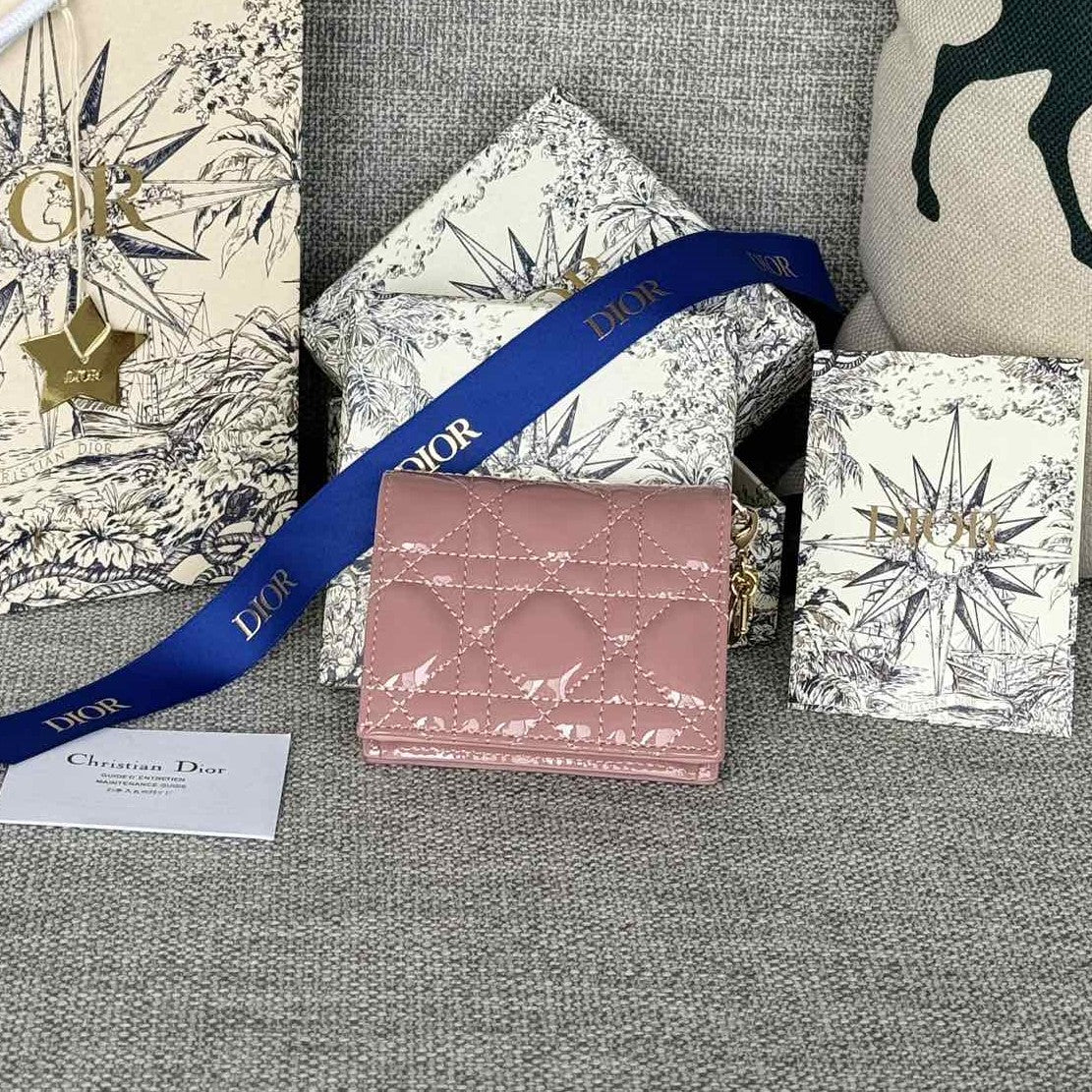CD Caro 11cm Compact Wallet Shiny Pink Calfskin