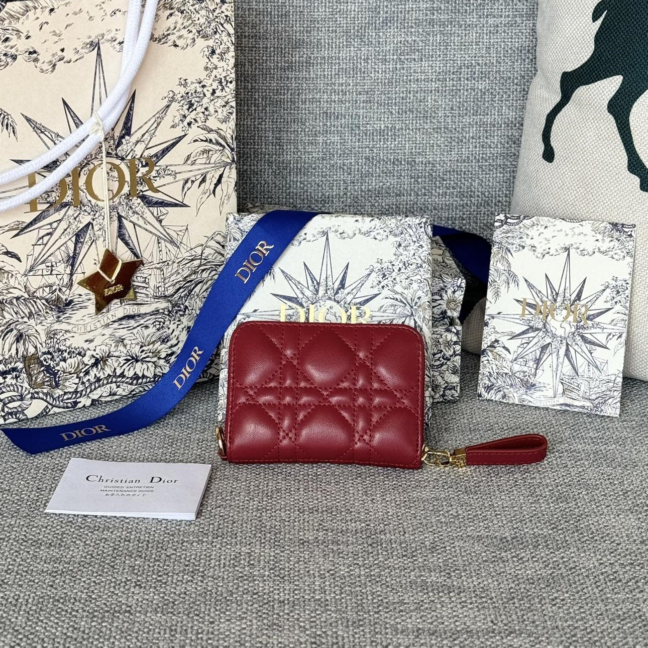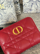 CD Logo Caro 11cm Compact Wallet Red Calfskin