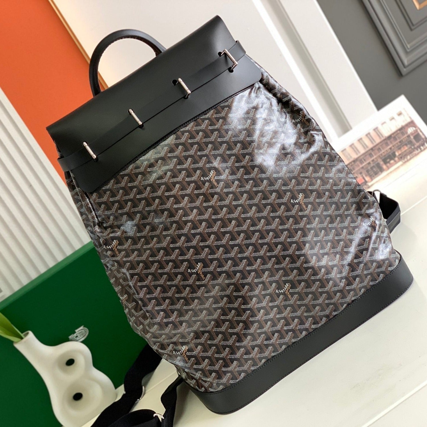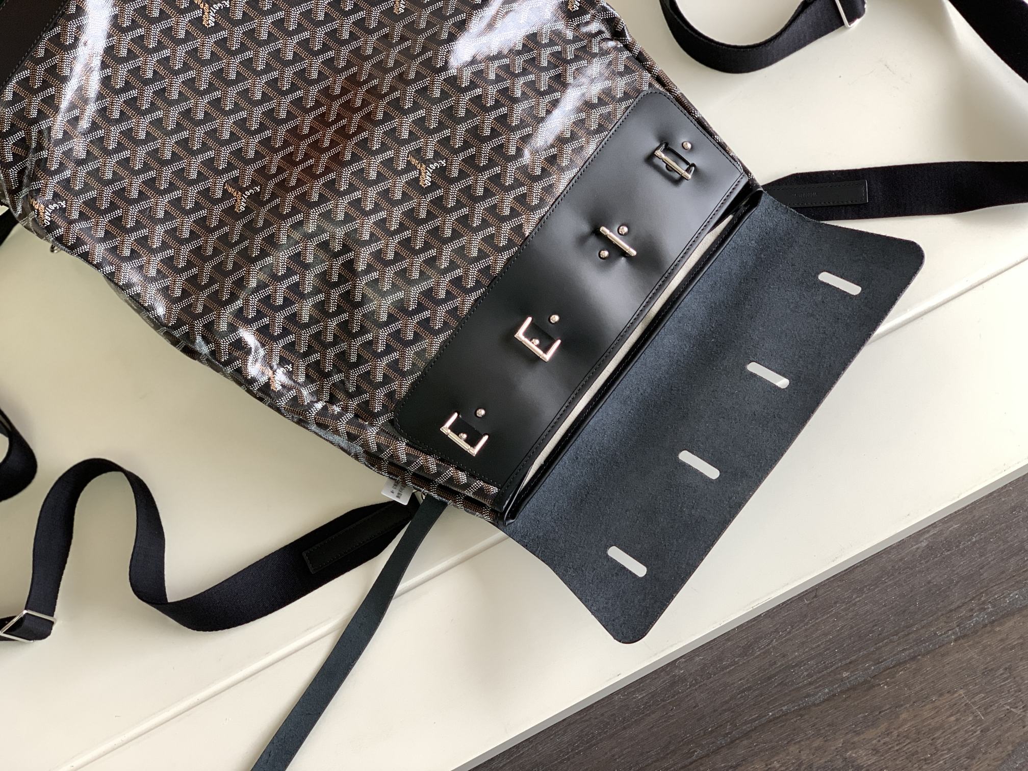 - Material: Goyardine canvas & chevroches calfskin