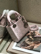 LADY 24 HANDBAG EMBOSSED DIAMOND IN SILVER CALFSKIN