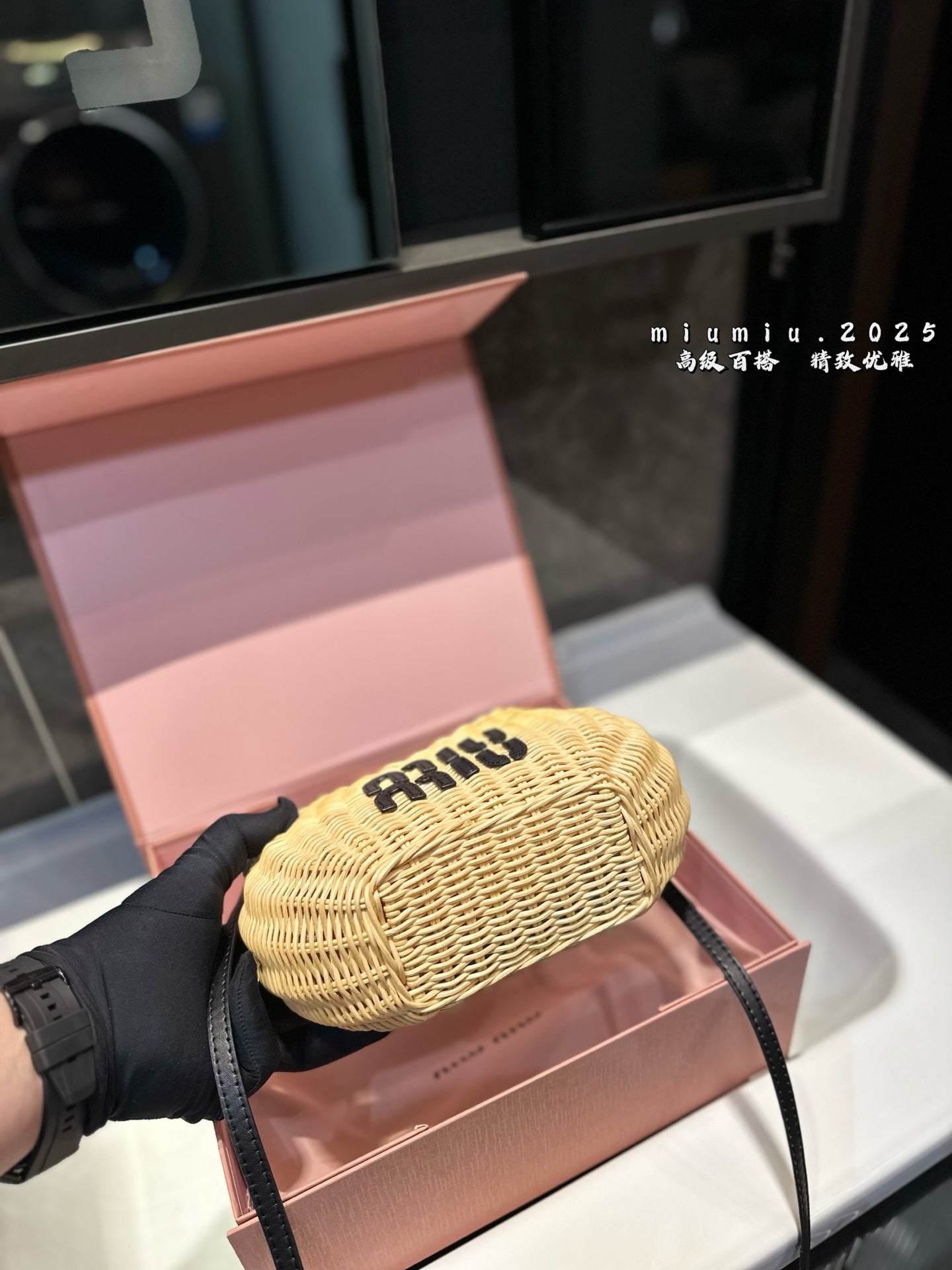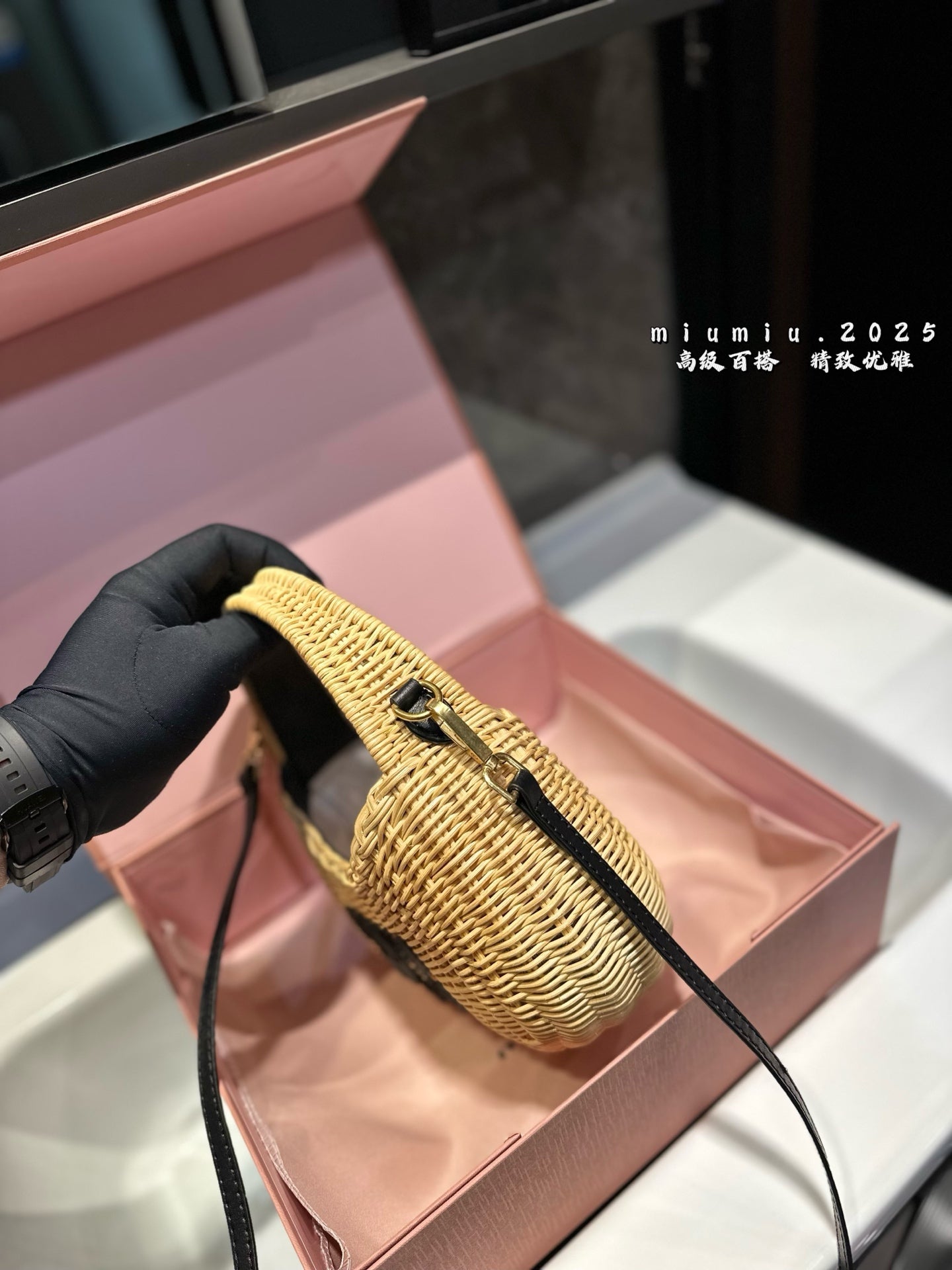 WANDER WICKER HOBO BAG 23 IN TAN BROWN HANDWOVEN WITH BLACK CALFSKIN LOGO