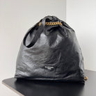 CRUSH LARGE TOTE BAG 46 IN BLACK CRUSHED CALFSKIN GOLD HARDWARE