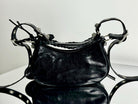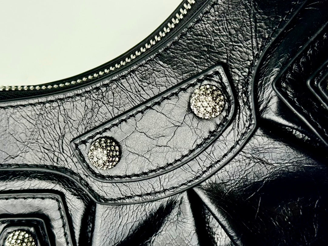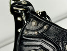 LE CAGOLE SMALL SHOULDER BAG 26 WITH RHINESTONES IN BLACK ARENA LAMBSKIN SILVER HARDWARE