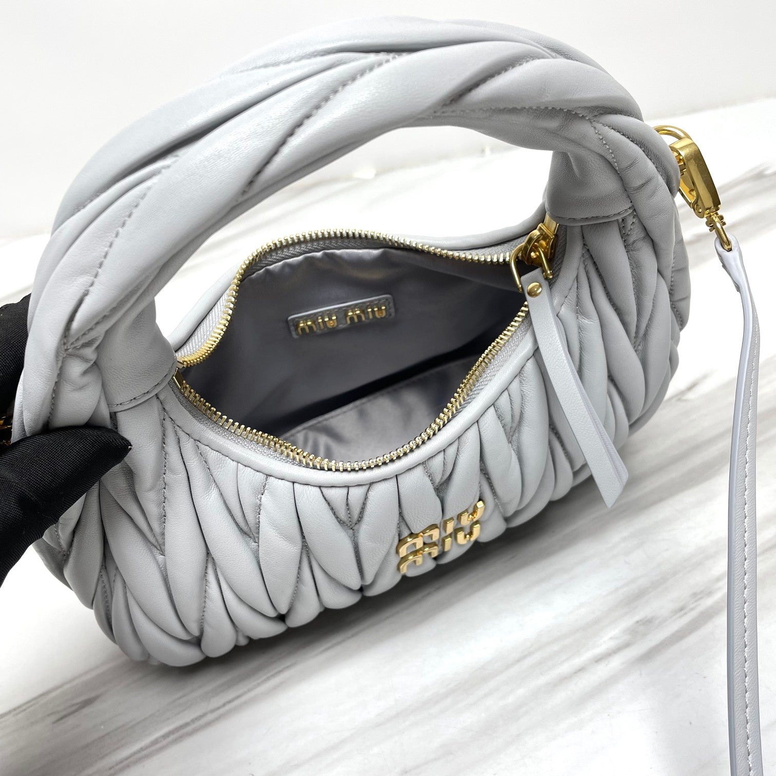 miuwander hobo 23 grey matelasse leather