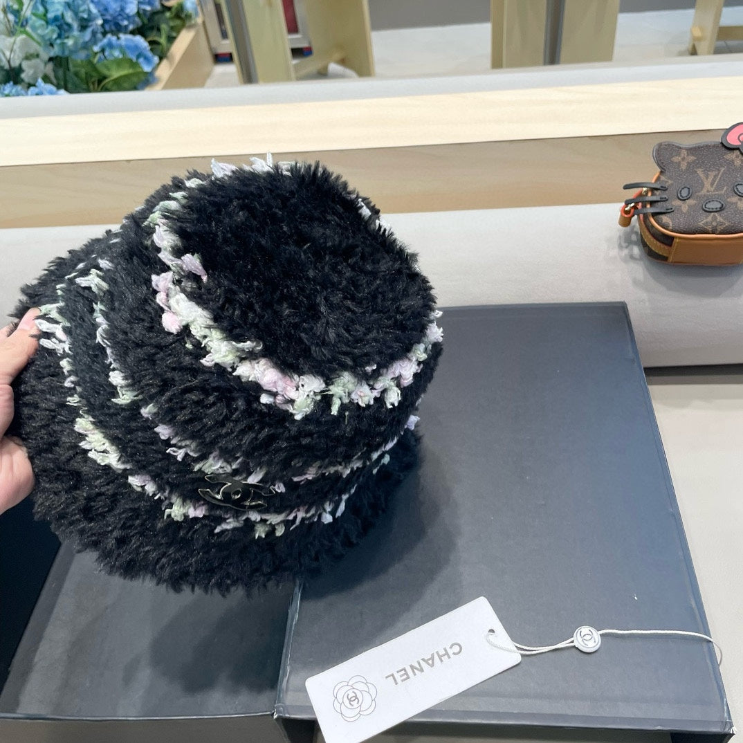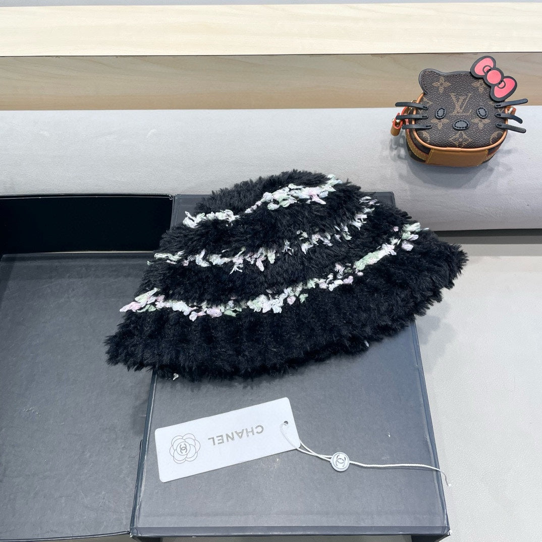 • Stylish plush bucket hat for women, suitable for autumn and winter, designed for warmth with a mixed-color look.