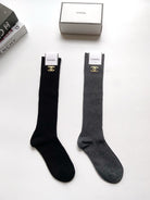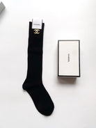 • Classic double C letter logo pure cotton knee-high socks from CC, leg socks.