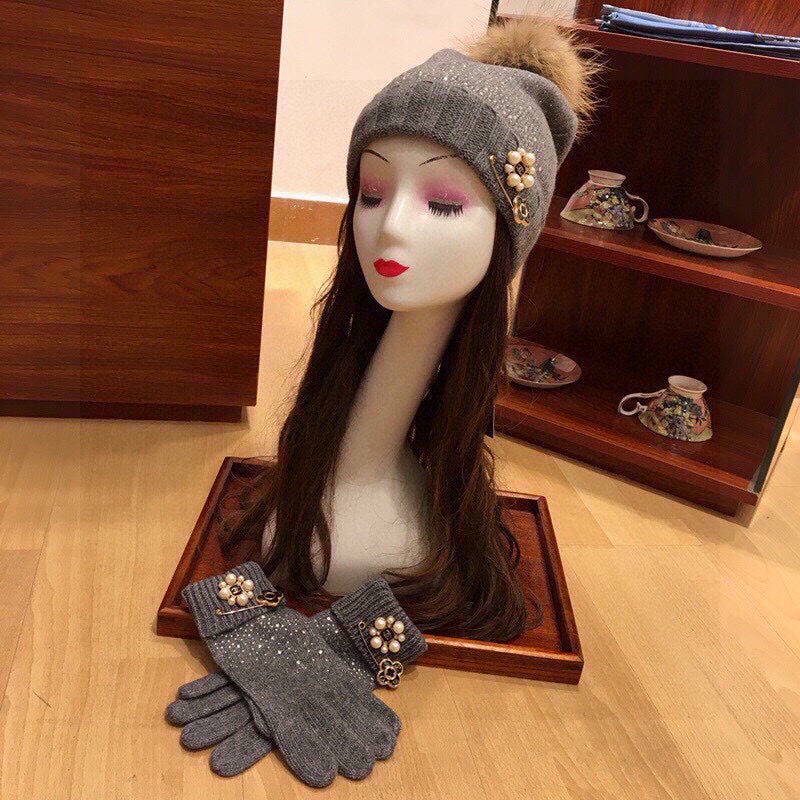• Cashmere Knit Scarf, Hat, and Gloves Set