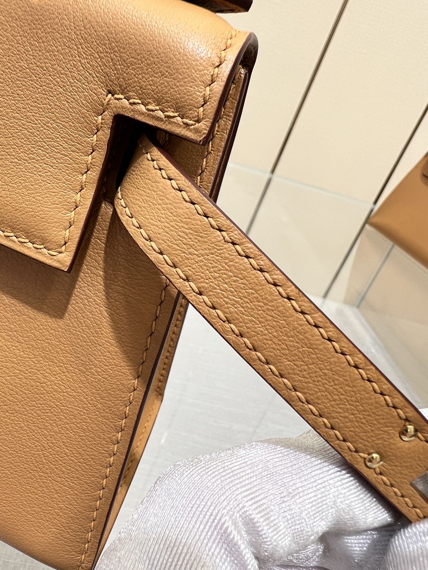HM KELLY POCHETTE 22CM BROWN SWIFT GOLD HARDWARE
