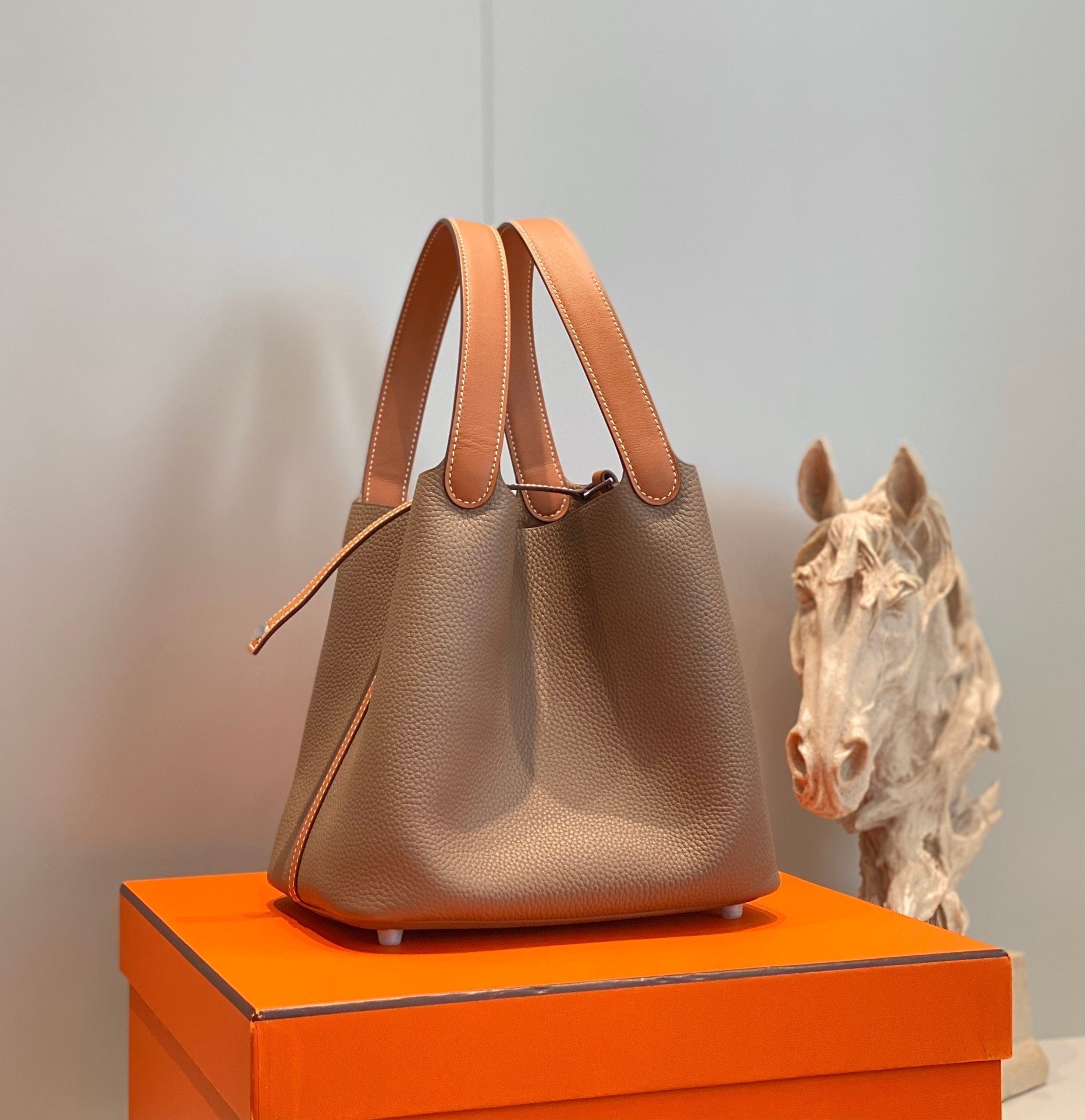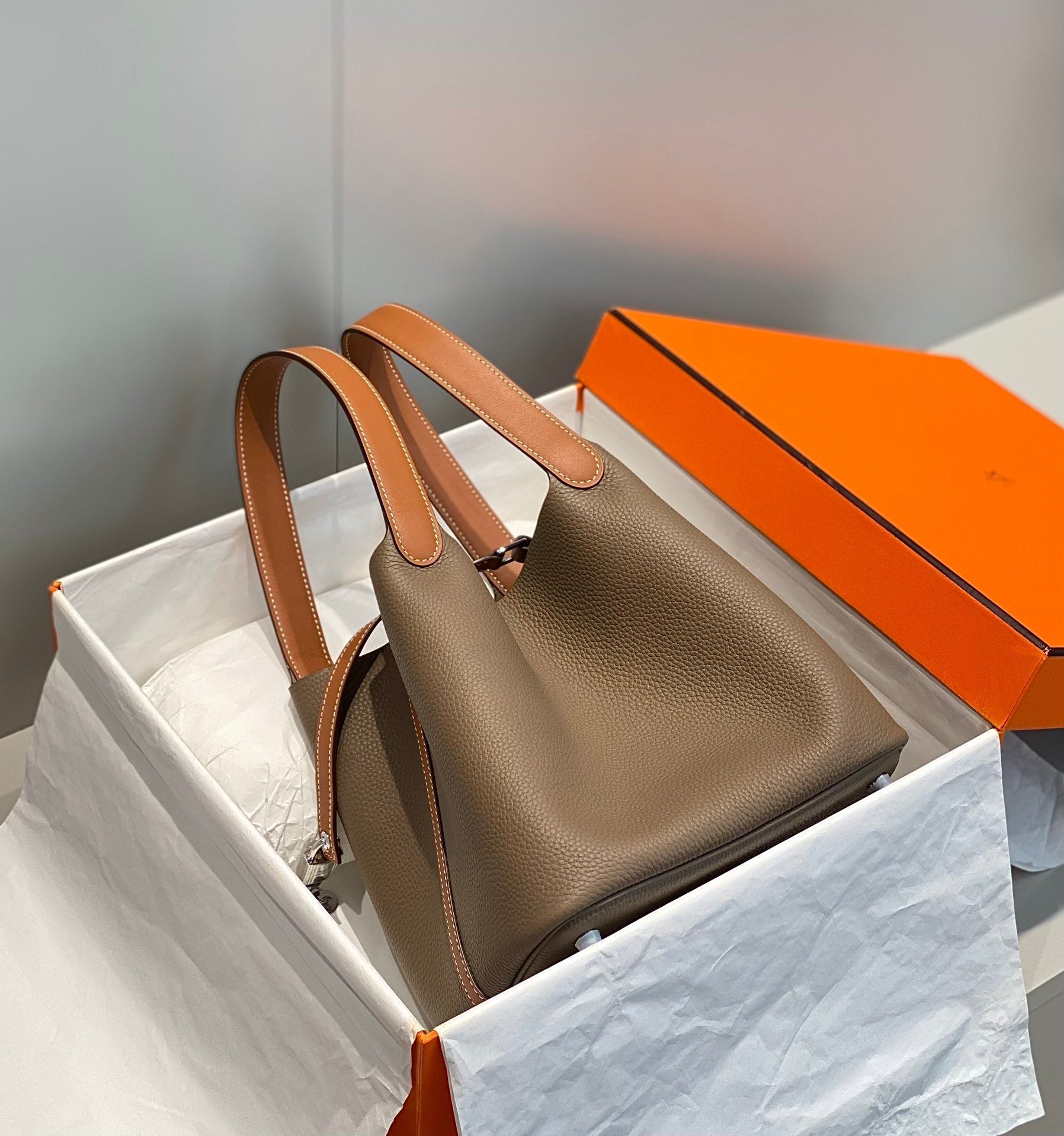 HM PICOTIN LOCK 22 ASH BROWN TOGO LEATHER