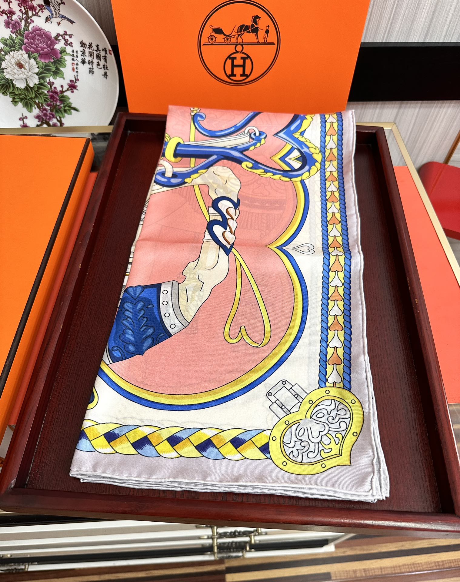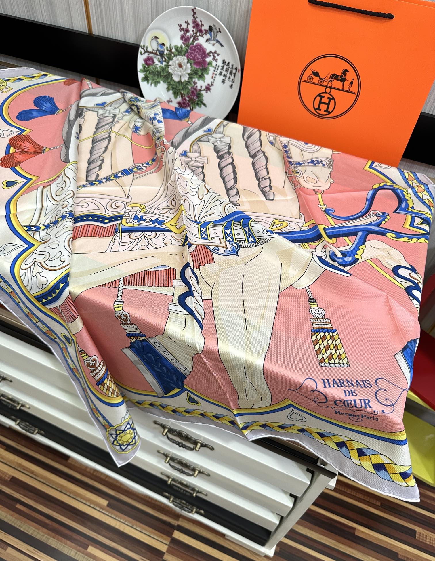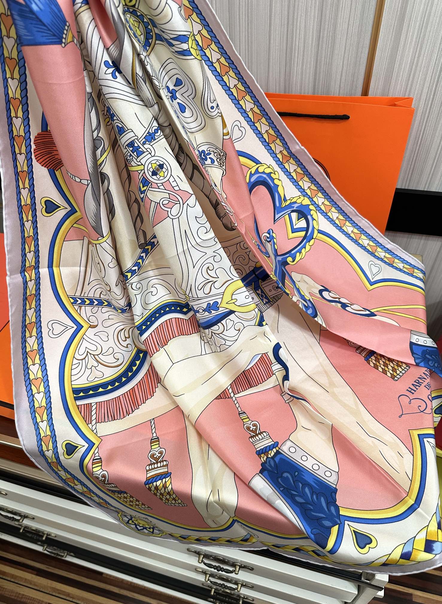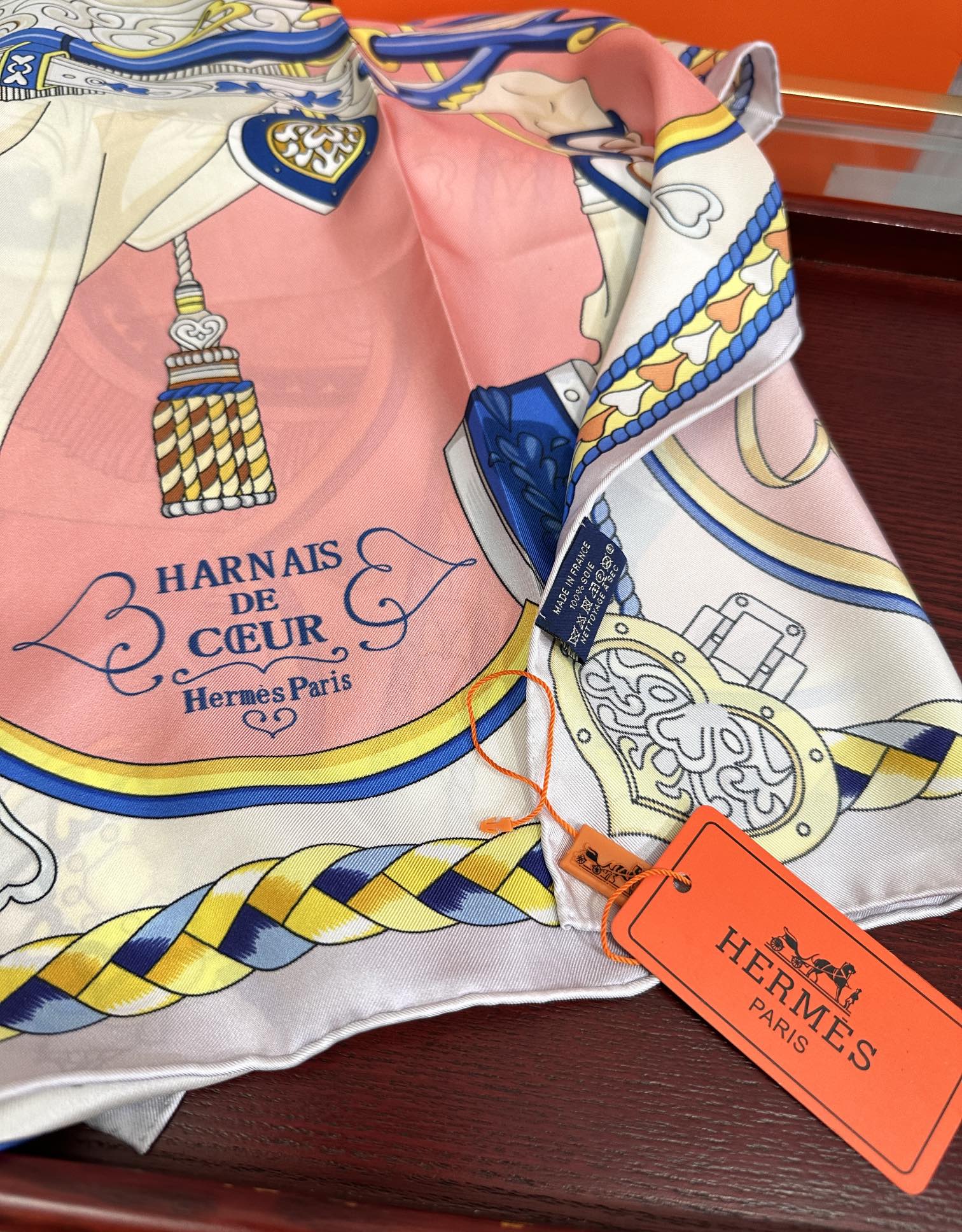 Carré Harnais De Cœur Scarf 90 CM In Pink Colorful Silk 306471