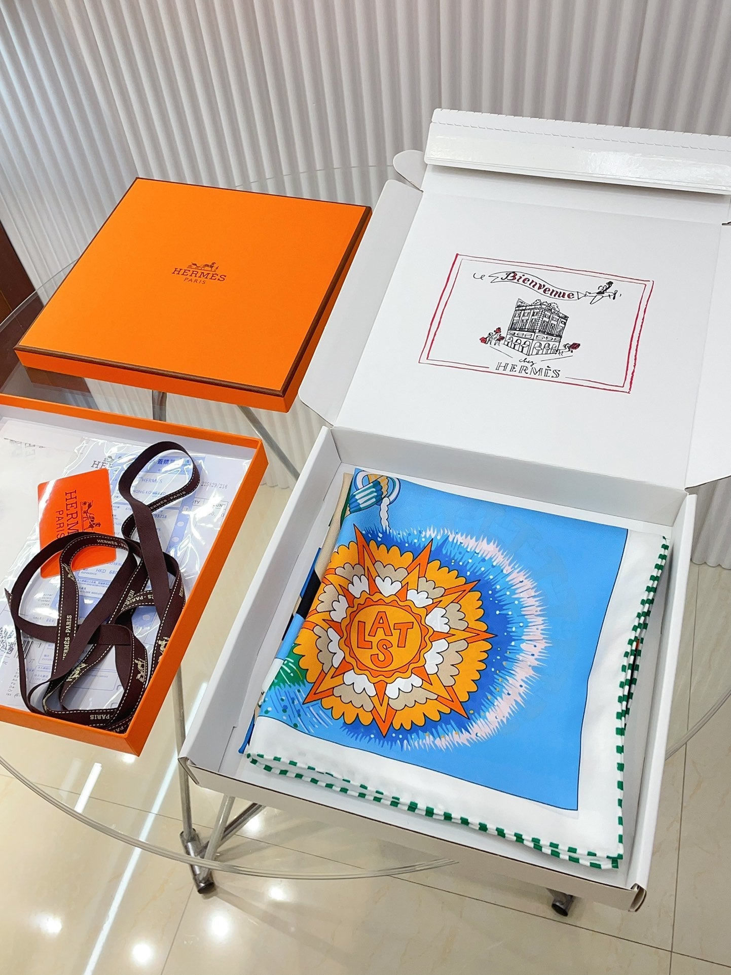 Cheval Mascotte Scarf 90 CM In Blue Colorful Silk Twill 206456