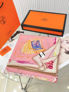 Chevaloscope Scarf 140 CM In Pink Colorful Cashmere And Silk 373660