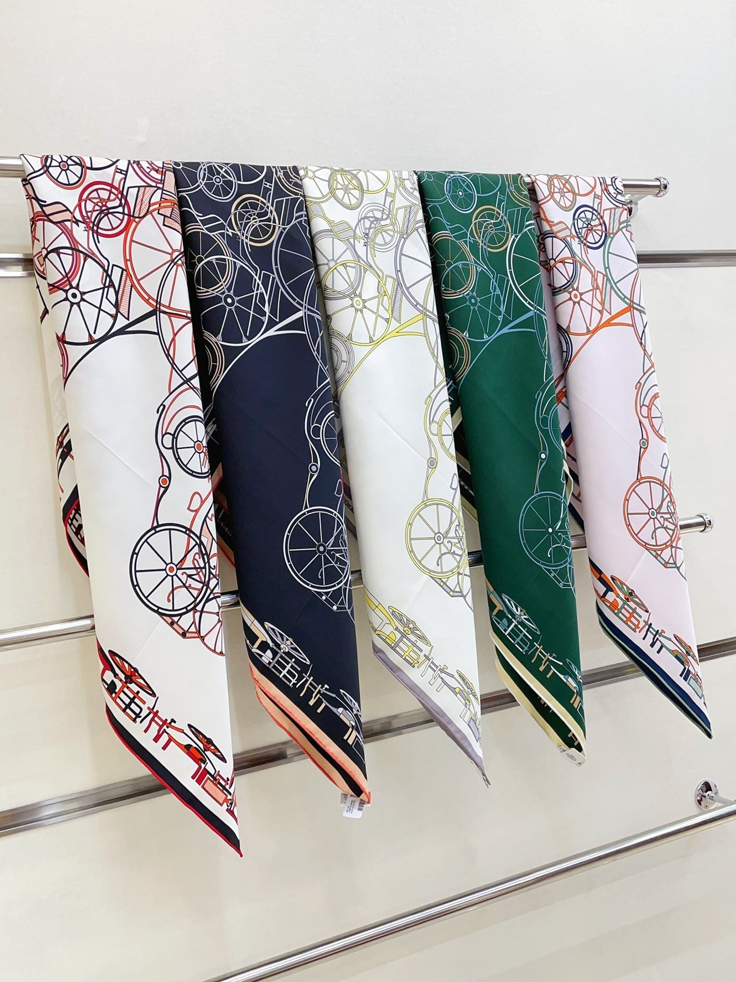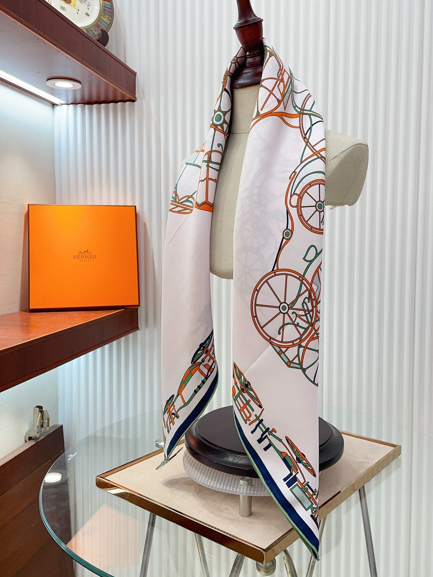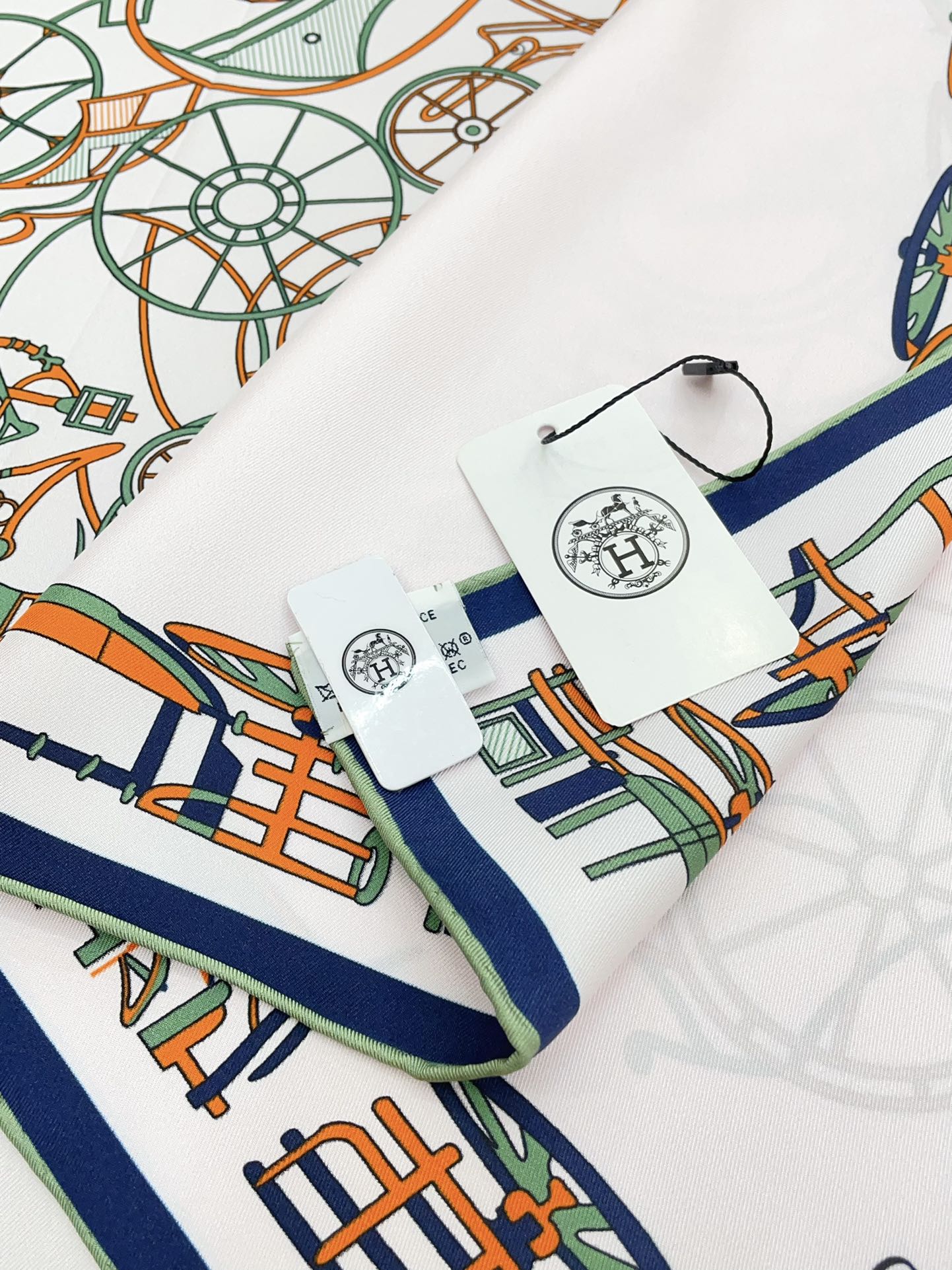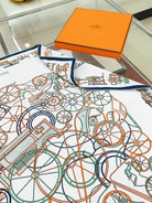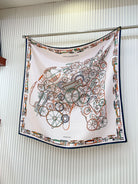 Complication Equestre Scarf 90 CM In White Red Coloful Silk Twill 345900