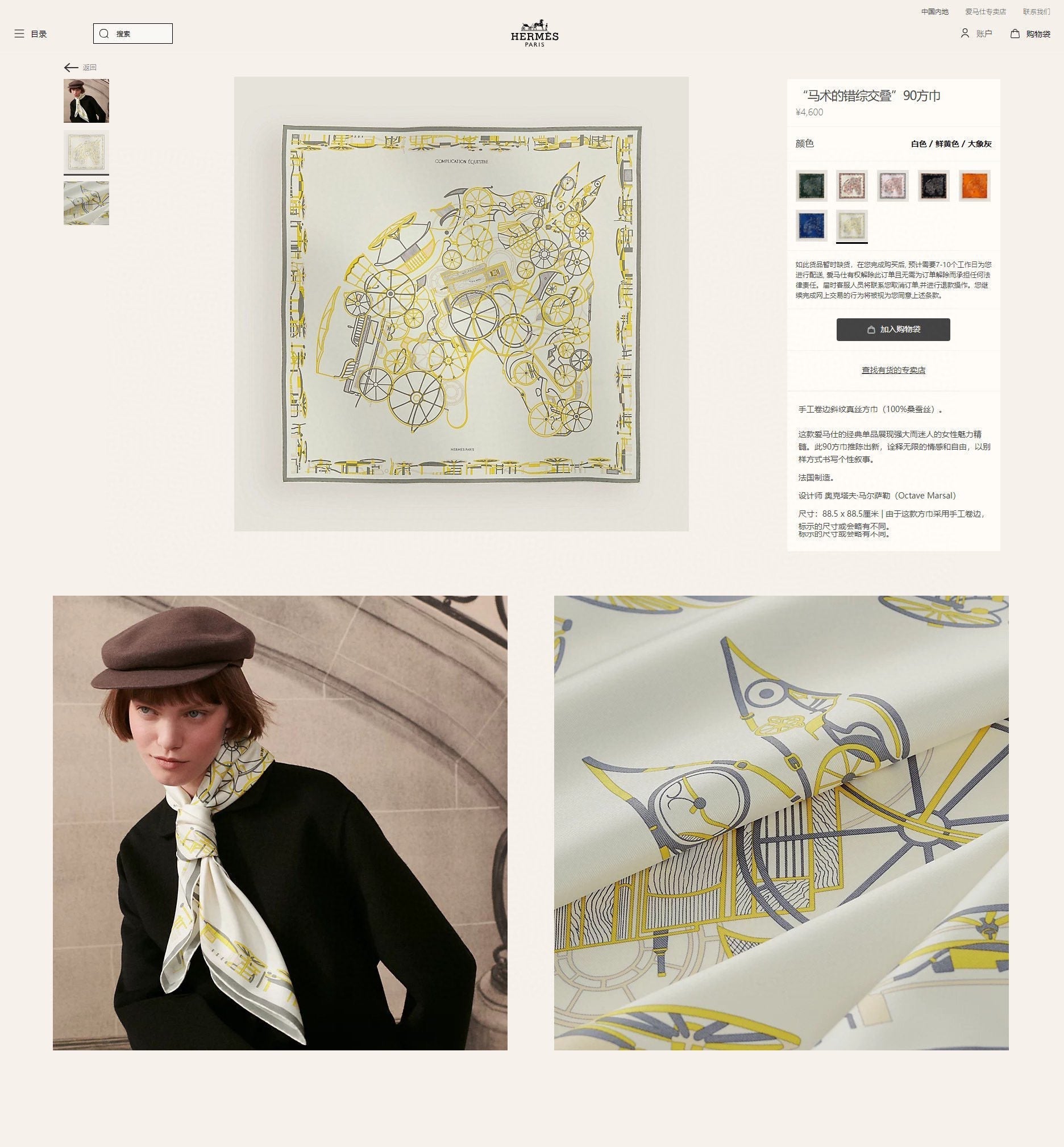 Complication Equestre Scarf 90 CM In White Yellow Coloful Silk Twill 345898