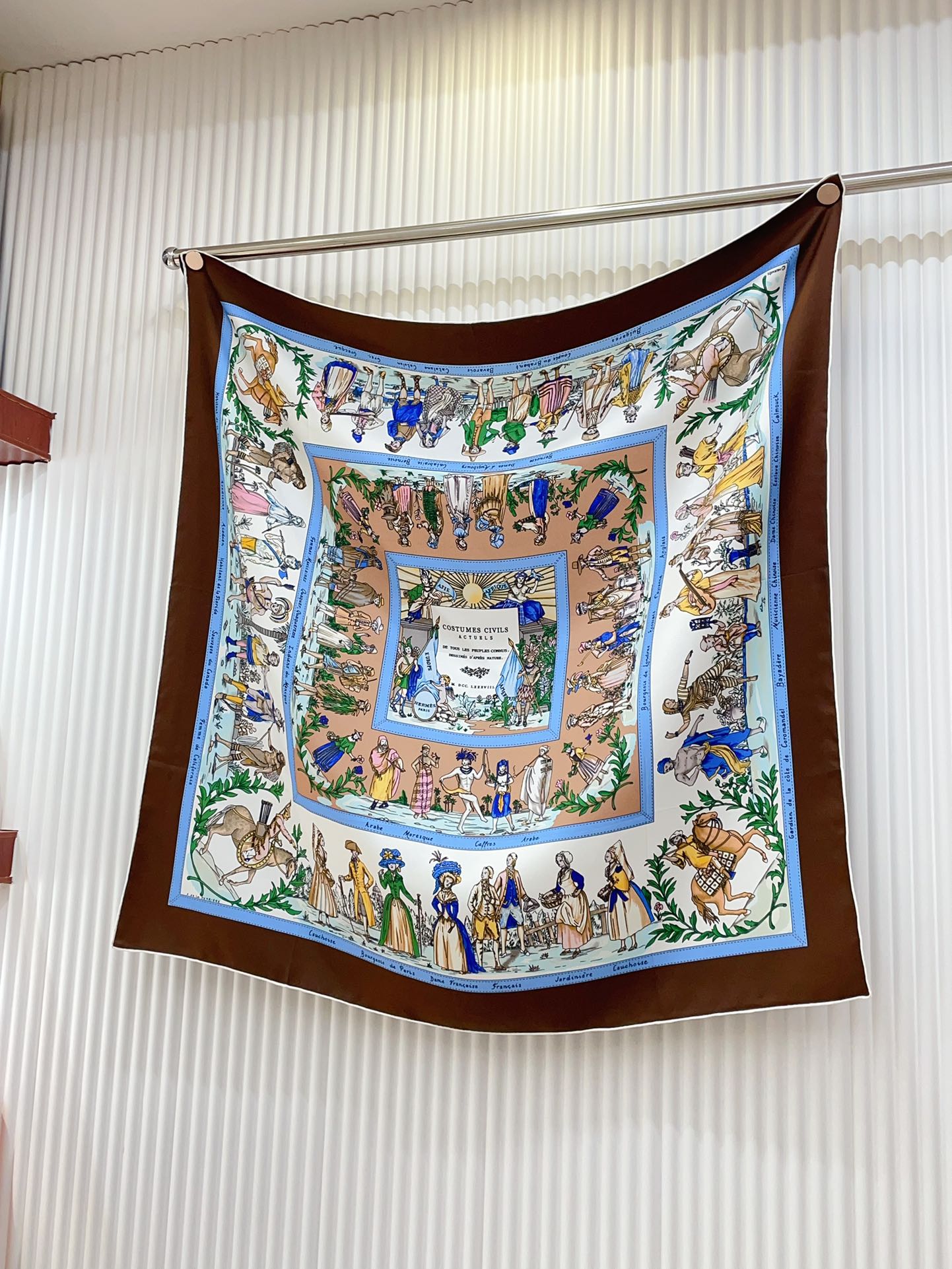Costumes Civils Actuels Scarf 90 CM In White Colorful Silk Twill 249934