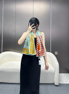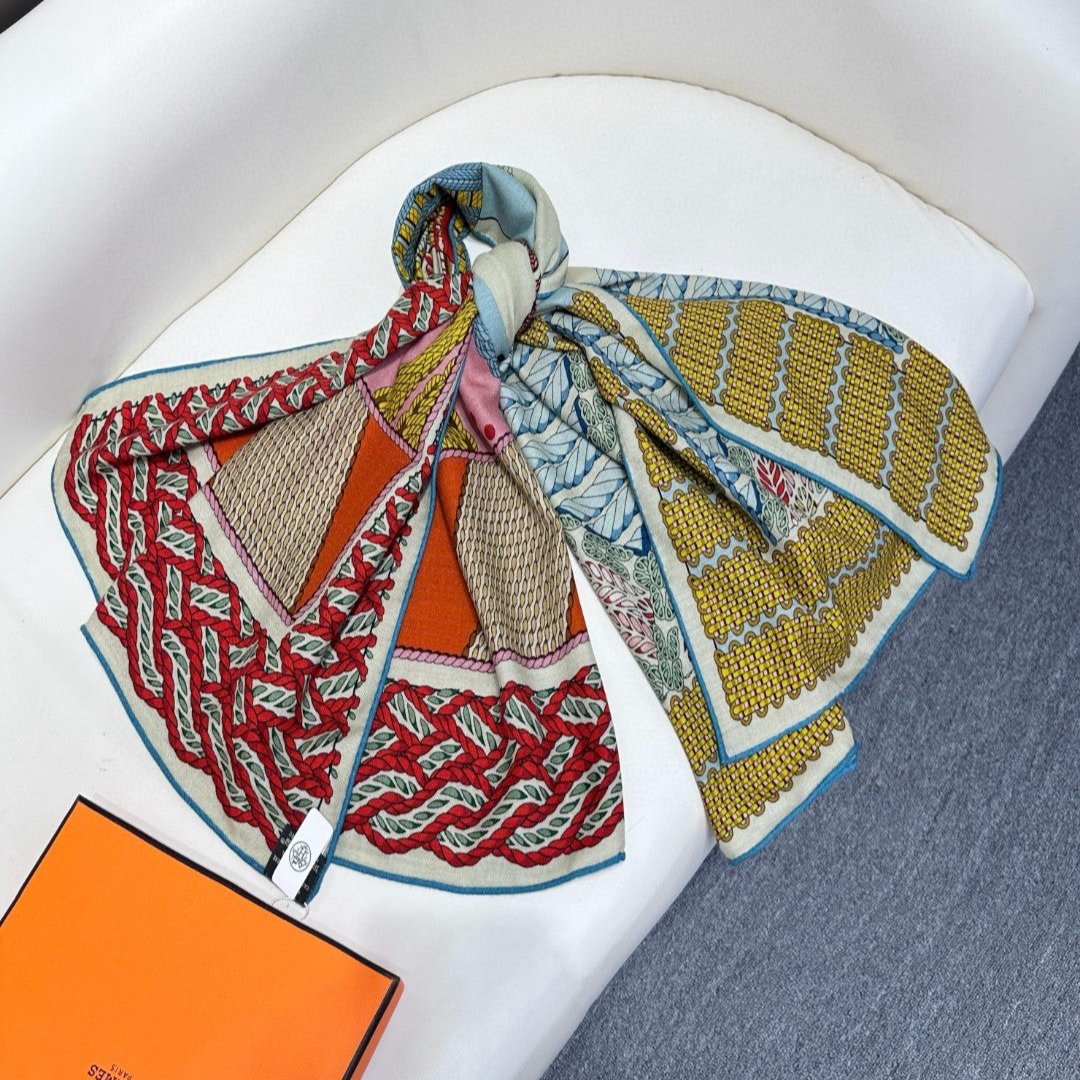 Dressage Tressage Shawl 140 CM In Red Yellow Colorful Silk