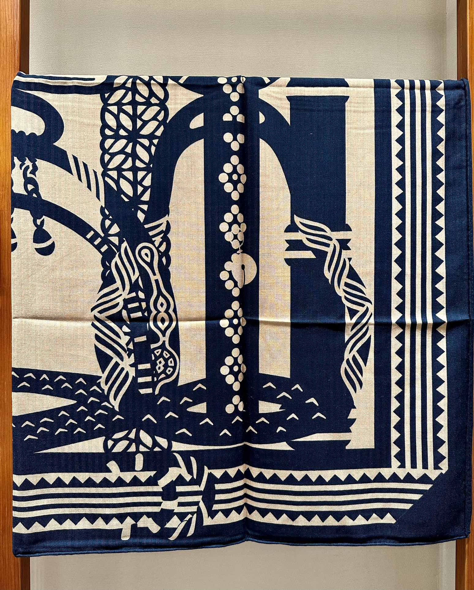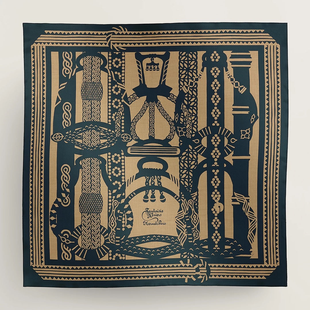 Fantaisie d'Etriers Scarf 140 CM Navy Blue Silk