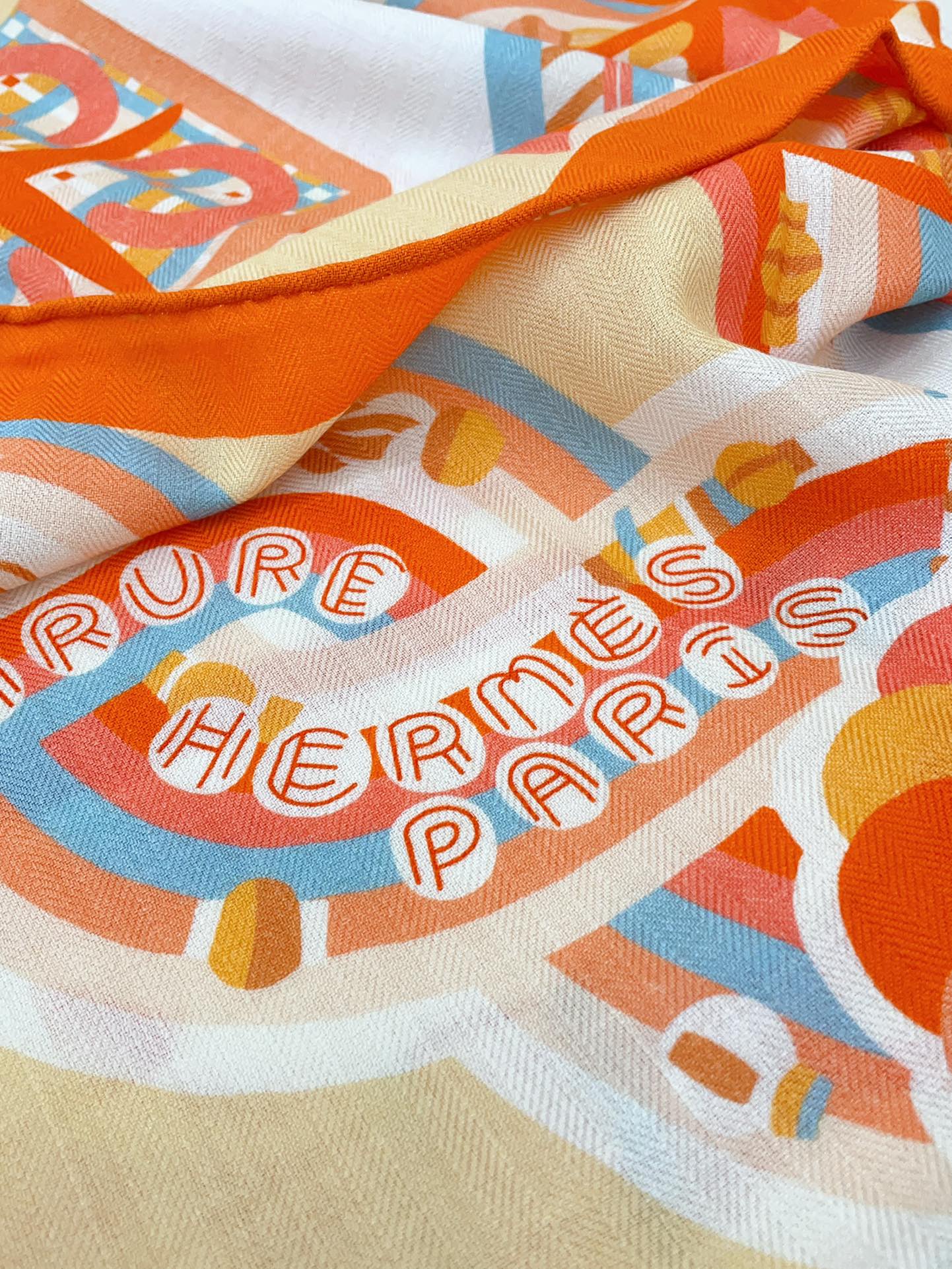 Haute Parure Scarf 135 CM In Orange Colorful Cashmere And Silk 324754