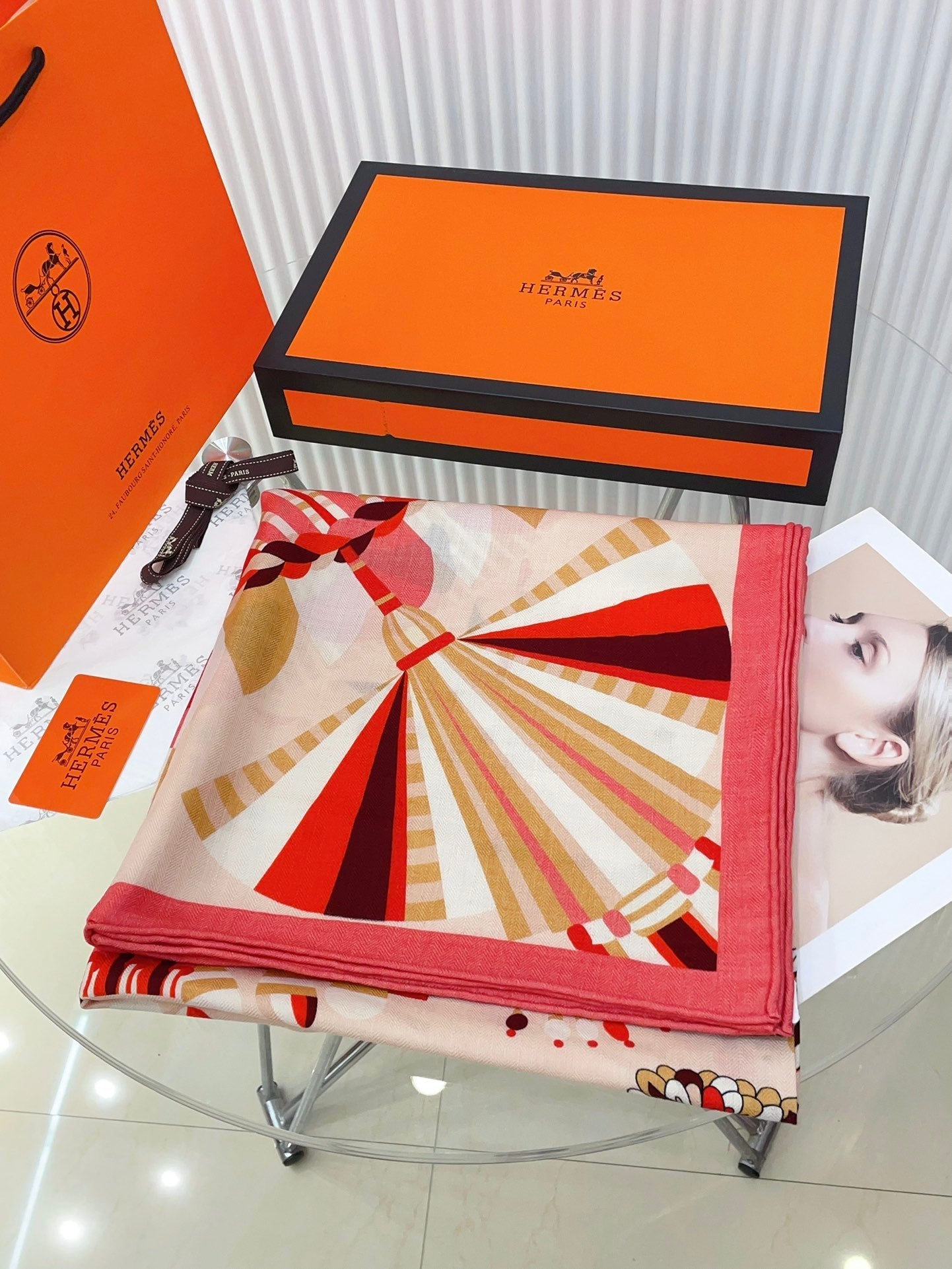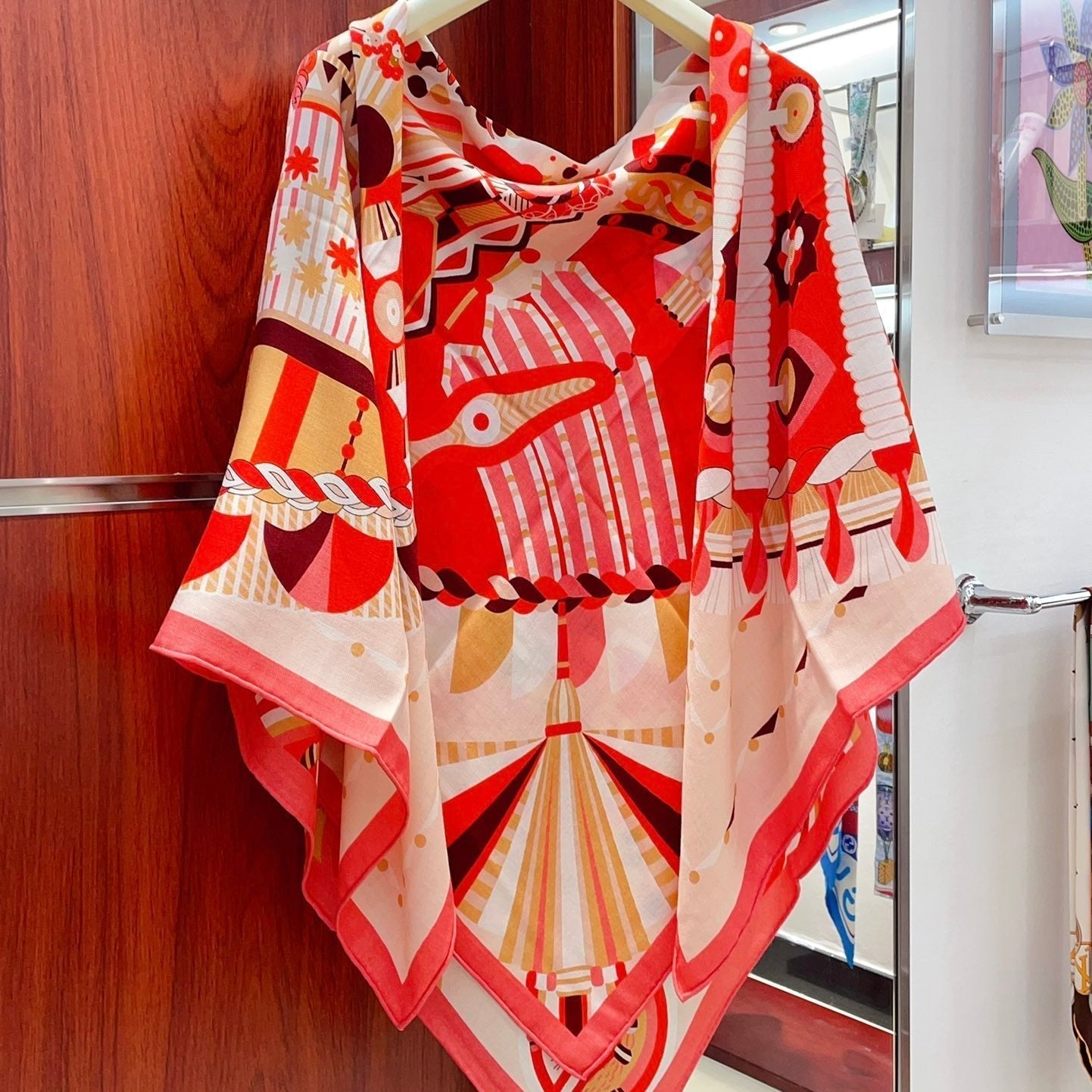 Haute Parure Scarf 135 CM In Red Colorful Cashmere And Silk 324751