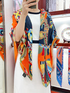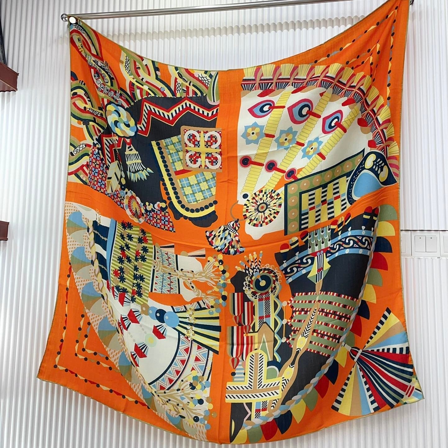 Haute Parure Scarf 135 CM Orange Colorful Cashmere And Silk 405068