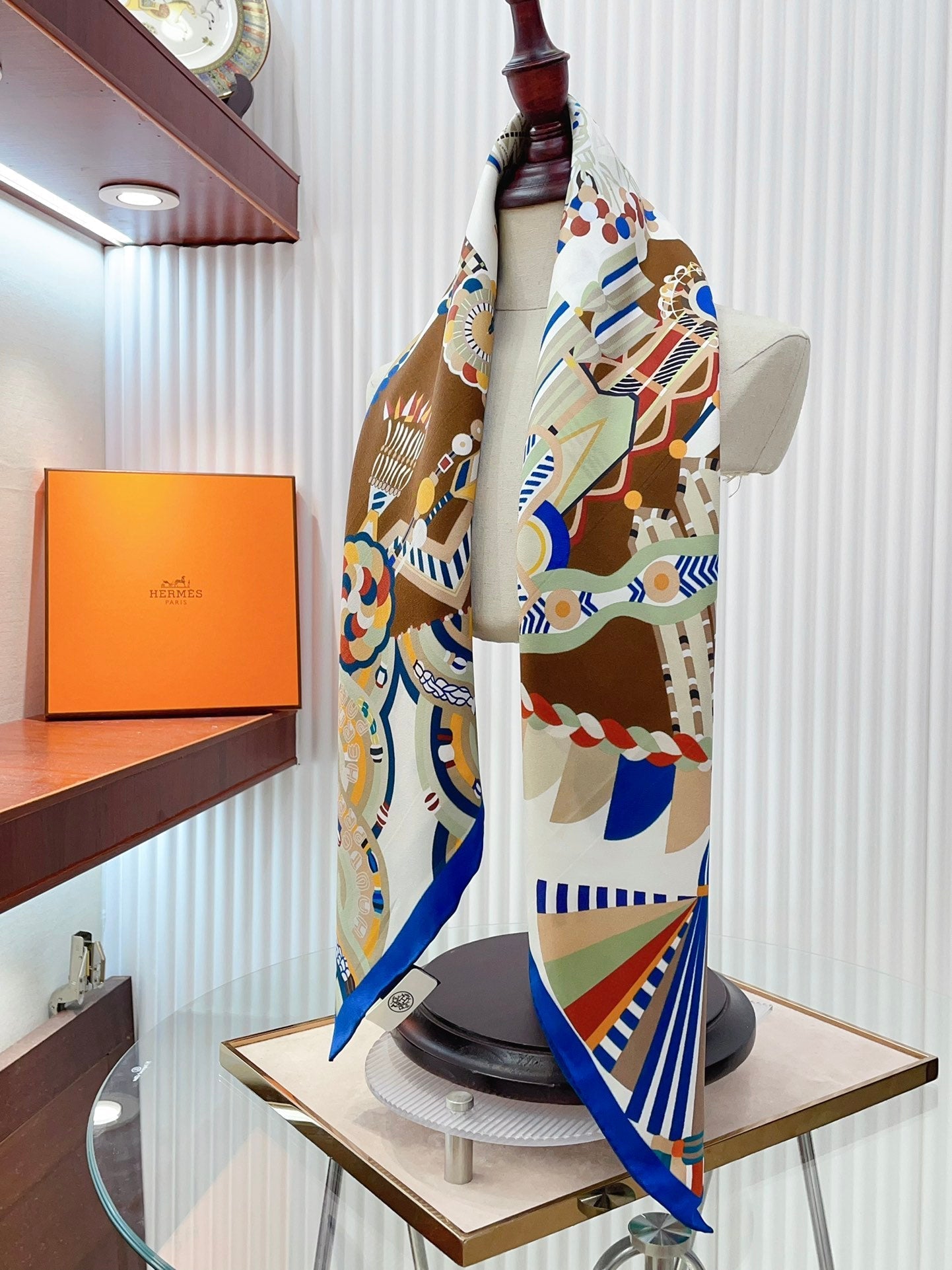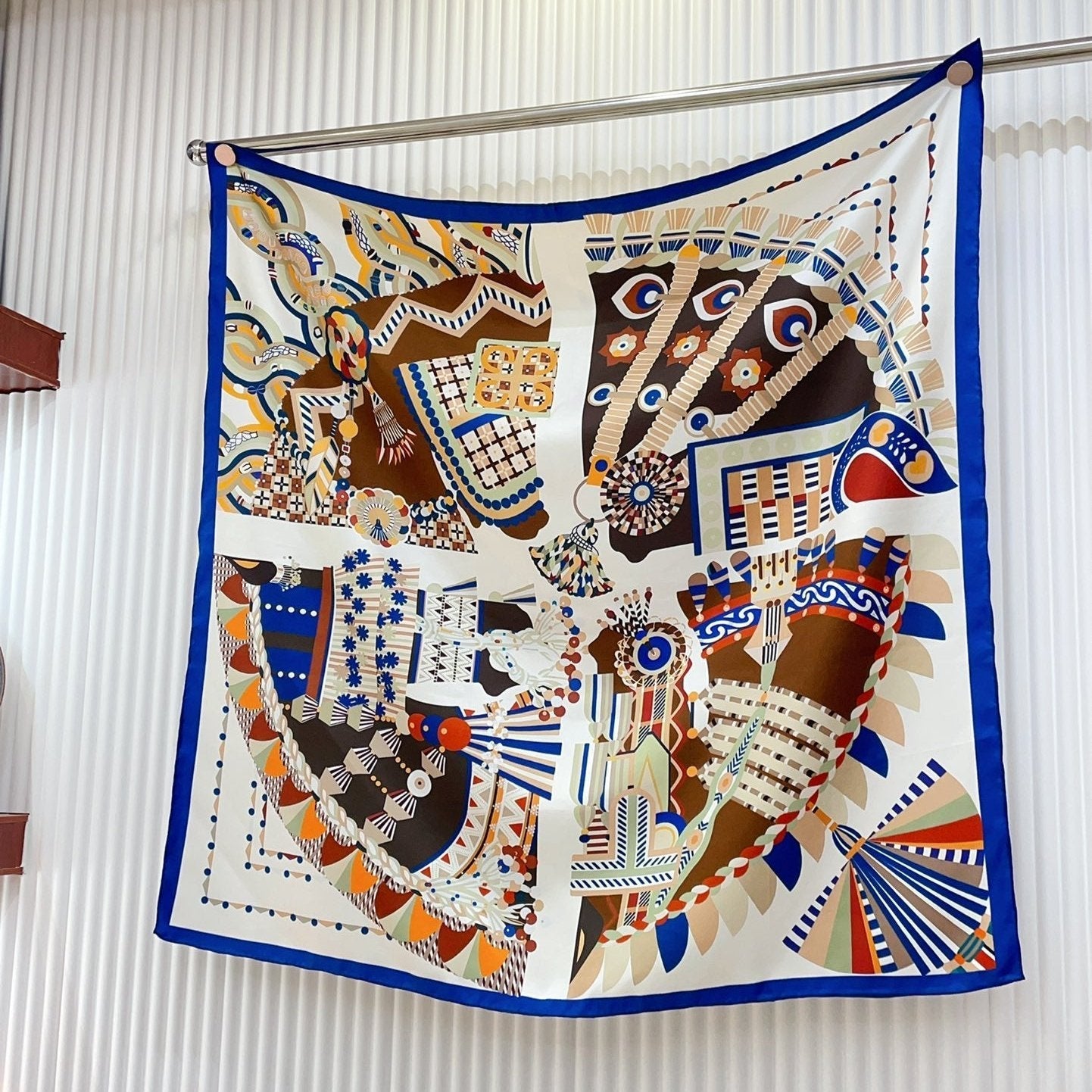 Haute Parure Scarf 90 CM In White Colorful Silk Twill 239533