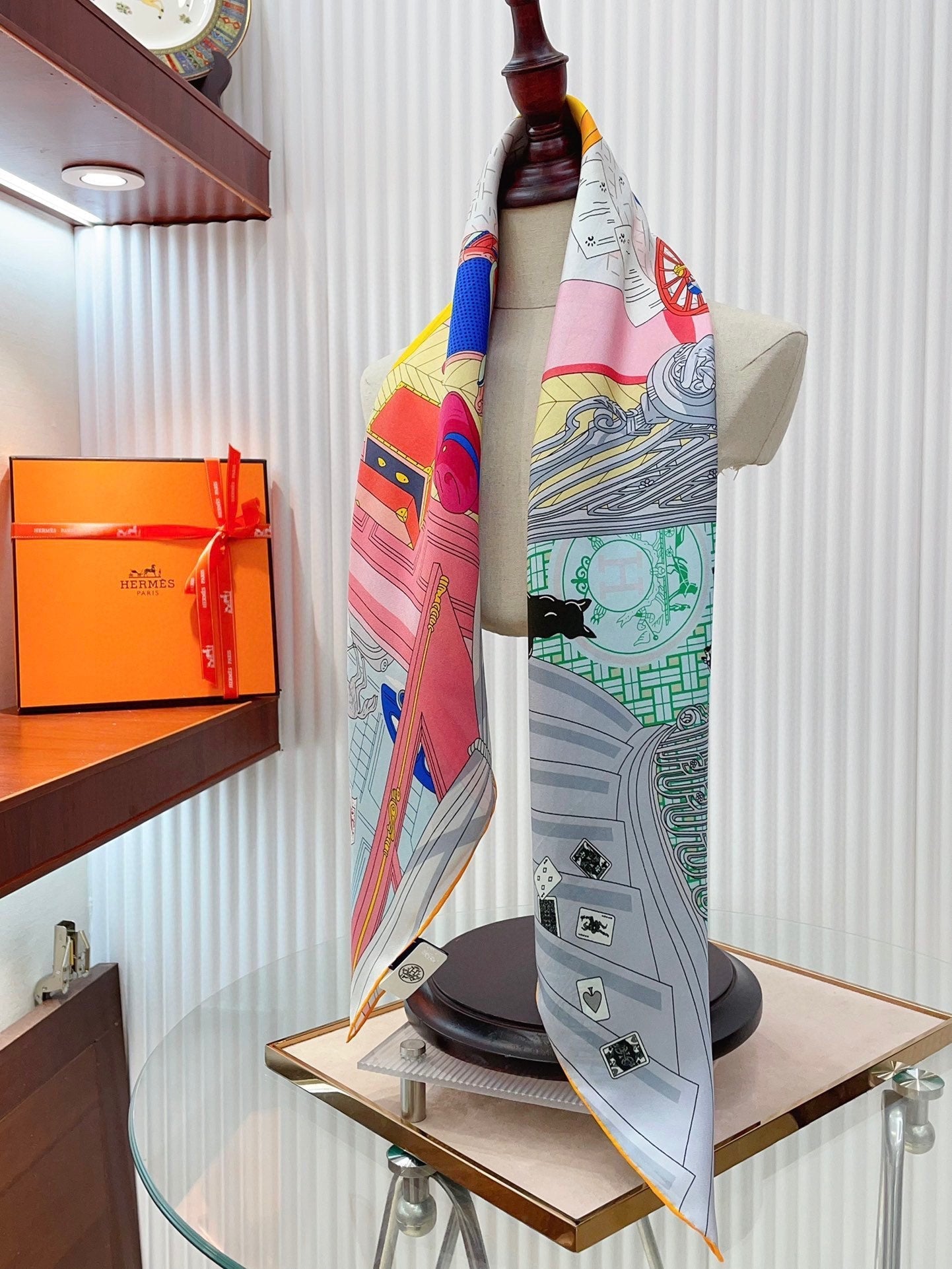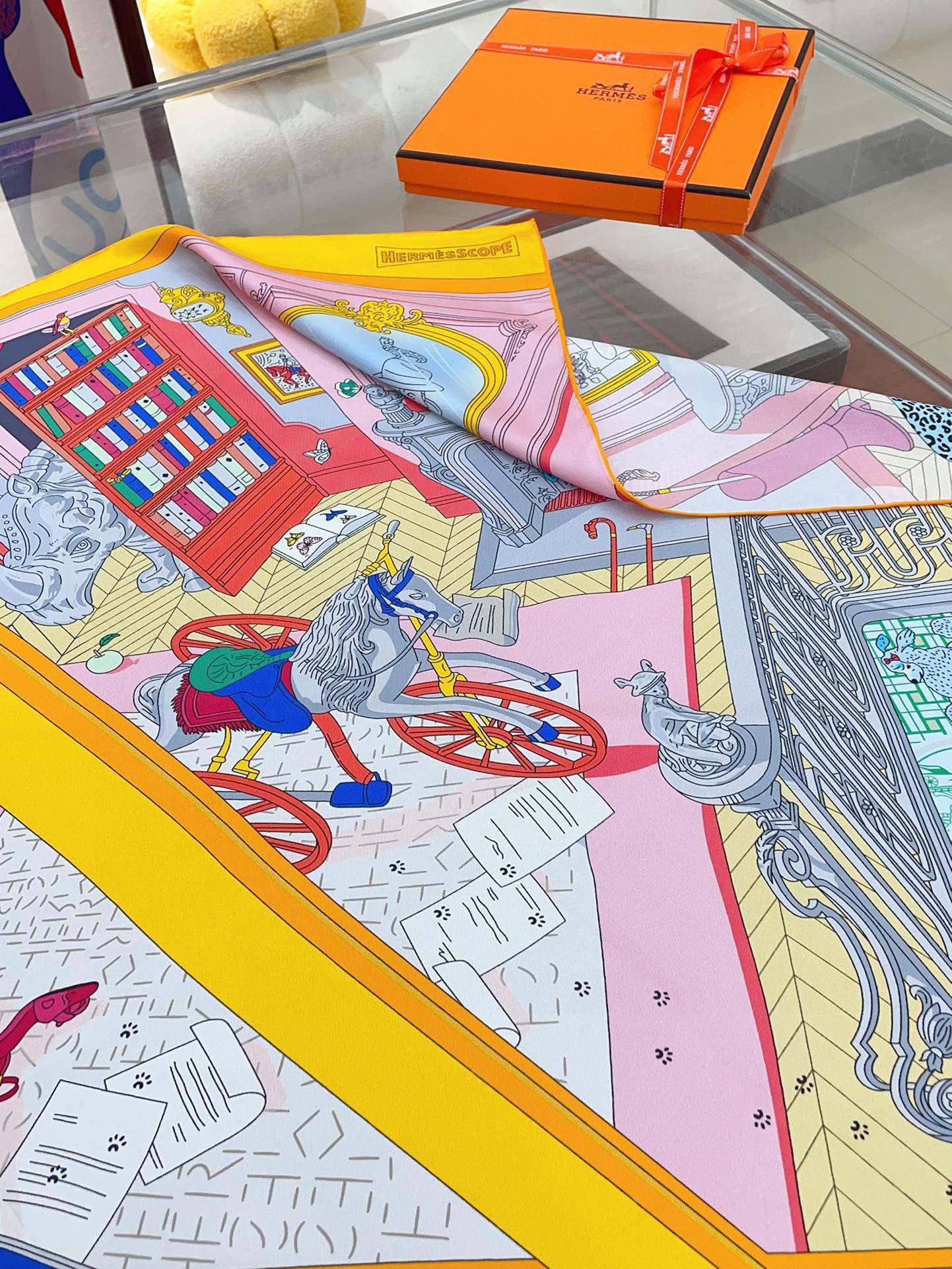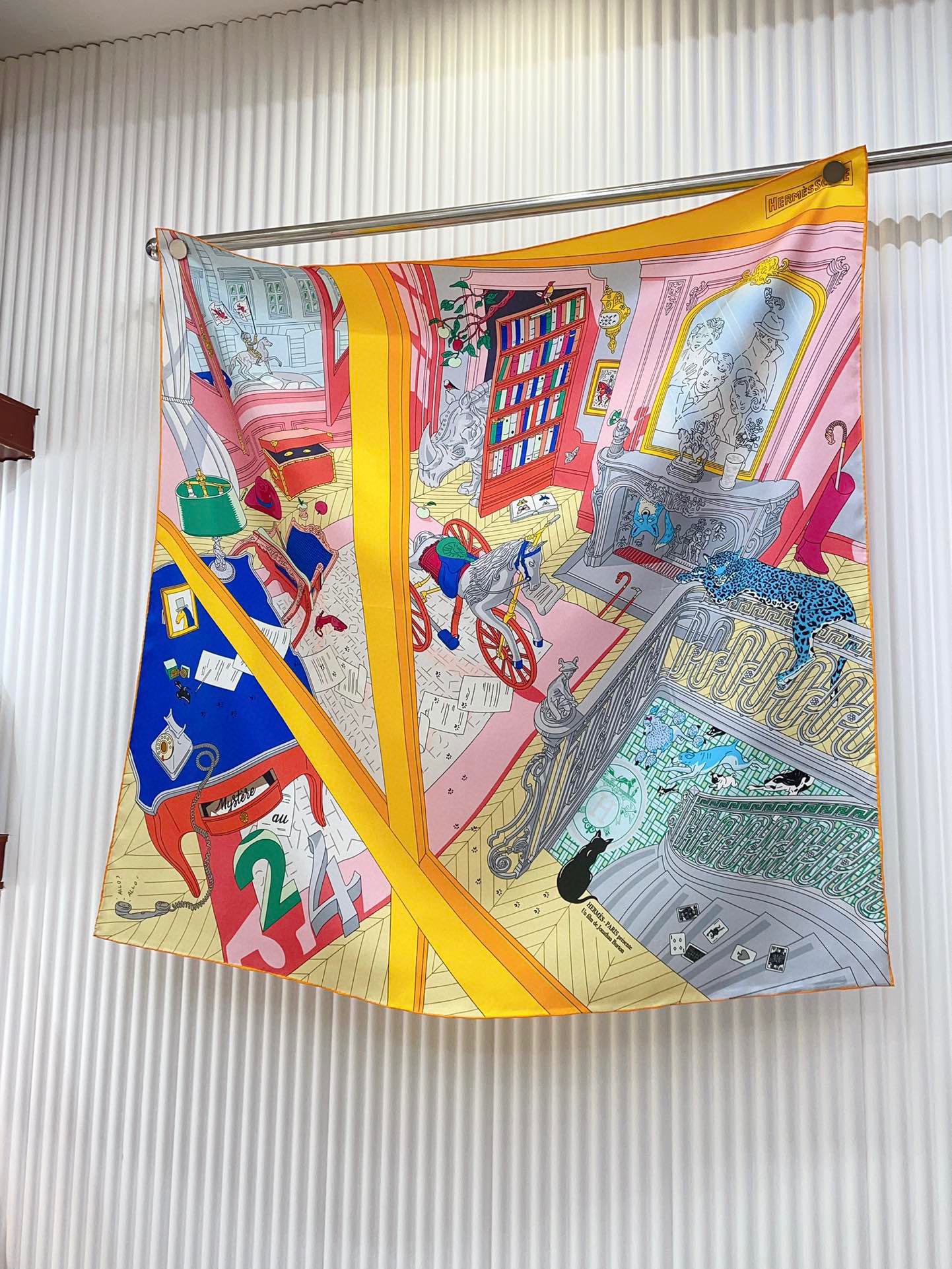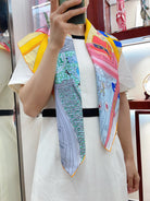 Mystere Au 24 Scarf 90 CM In Grey Colorful Silk Twill 321936