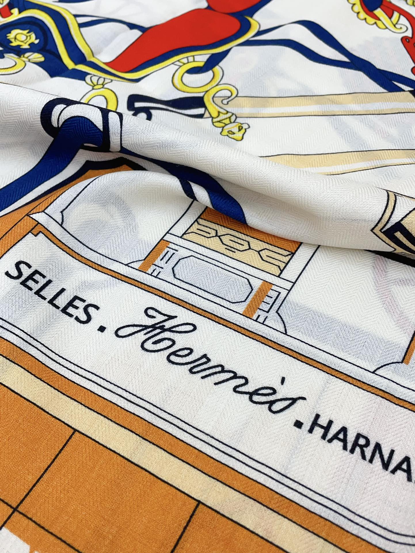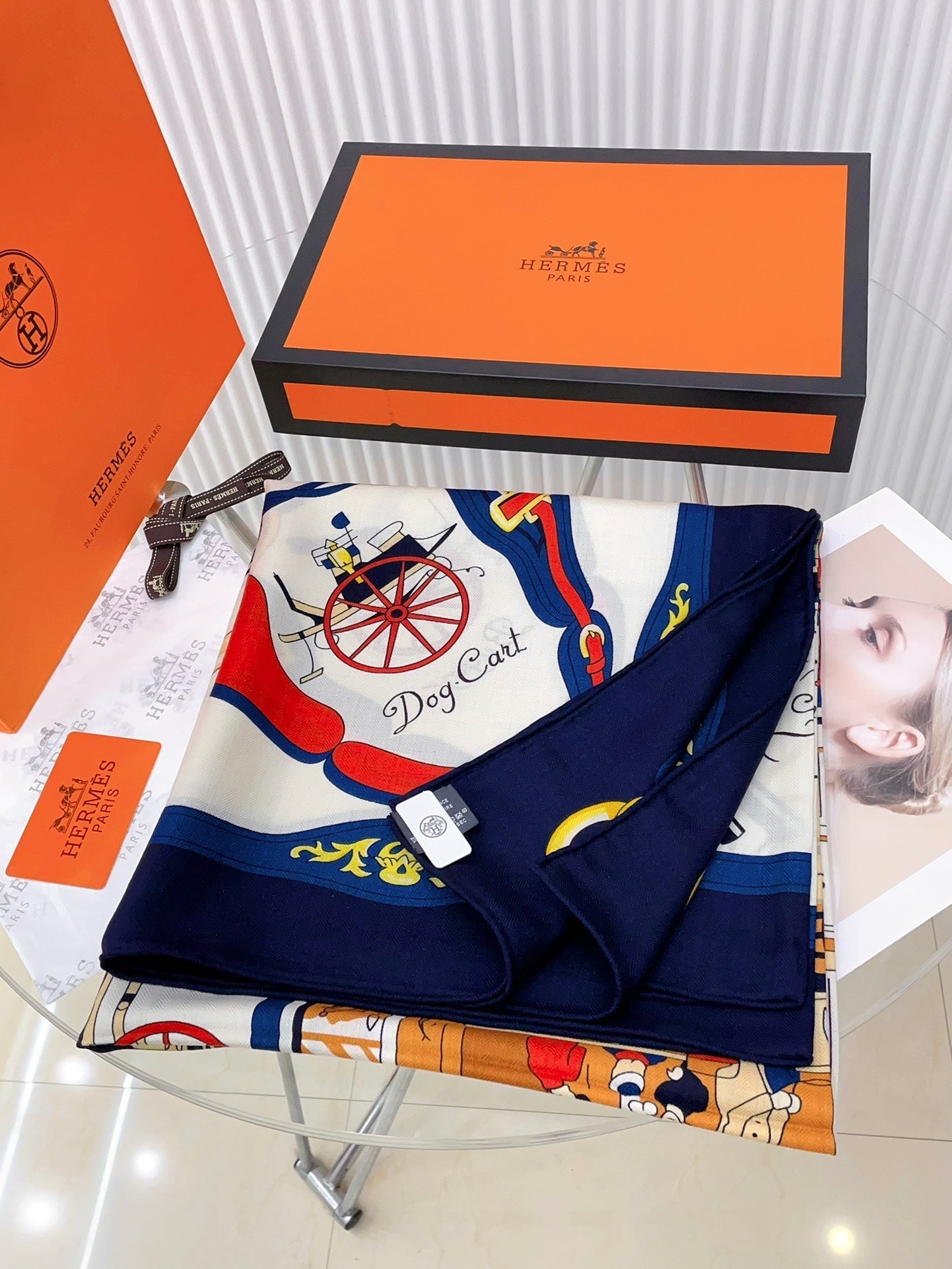 Palonniers Scarf 135 CM In Navy Blue Colorful Cashmere And Silk 327473