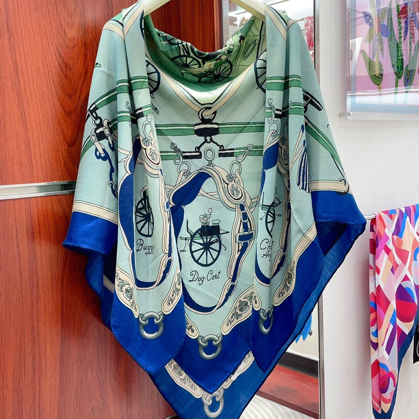 Palonniers Scarf 140 CM Jade Green Colorful Cashmere And Silk 401163