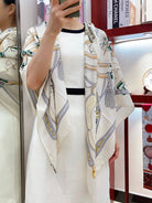 Palonniers Scarf 140 CM White Colorful Cashmere And Silk 401162